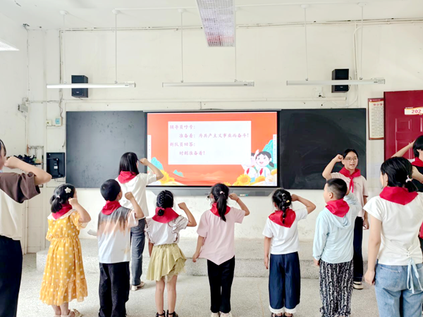 “红领巾是红旗的一角,凝聚着无数革命先烈的热血。”大队辅导员在寄语中深情嘱托,“希望队员们铭记‘请党放心,强国有我'的誓言,从小学党史、感党恩,在课堂里增长知识,在实践中锤炼本领,争做有理想、有担当的新时代好少年!”话语掷地有声,引发全场热烈掌声。