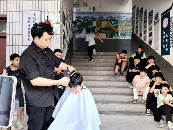近日,邻水县兴仁镇护邻中心学校迎来了一份特别的温暖——邻水县喜欢鲤发型工作室的季川老师来到学校,开展了一场充满爱心的公益活动,为学校30名贫困留守学生免费理发,用实际行动传递关爱。