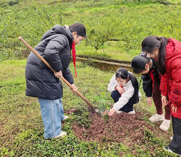 活动现场,同学们热情高涨、干劲十足。在老师和基地工作人员的指导下,大家三五一组,分工协作,挥锹铲土、扶苗填坑、提水浇灌……每一个环节都一丝不苟,每一道工序都认真细致。稚嫩的双手小心翼翼地栽下一棵棵花椒树苗,也在心间种下了绿色的希望。