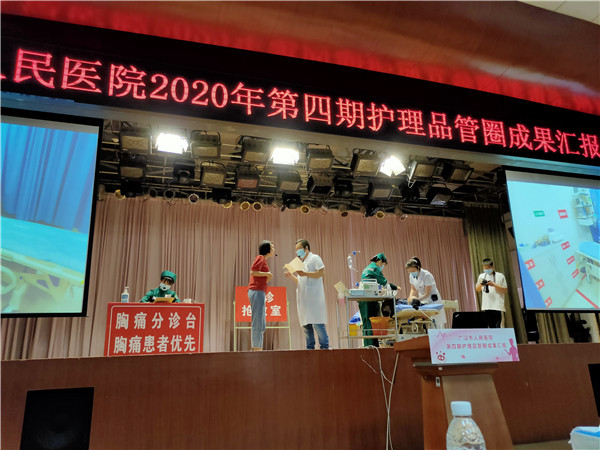 本期QCC活动完成了21个科室临床服务质量改善的项目,产生了5个专利发明(国家发明专利申请中),科研论文数篇。经过3.5小时紧张激烈的角逐,最后由手术室三位一体圈“提高手术安全核查规范执行率”获得一等奖;胸外科/肛肠外科/泌尿外科同心圈“提高食管癌患者术后早期下床活动执行率”、内五科温馨圈“降低STEMI患者door-in and door-out时间”获得二等奖;消毒供应中心责任圈“提高纸塑袋包装灭菌的合格率”、 外二科静心圈“降低外科病区噪音分贝值”、 内三科天使圈“降低内分泌科护士胰岛素注射相关针刺伤发生率”获得三等奖。
