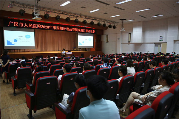 近日,广汉市人民医院在门诊六楼多功能厅举办了广汉市人民医院第四期护理品管圈(QCC)成果汇报与评比赛。活动由广汉市人民医院副院长马朝燕致开幕辞,对医院的护理团队建设,提高以病人为中心的护理服务质量,取得的成果给予了肯定。本次品管圈成果汇报,为2019年5月-2020年5月期间开展的QCC活动,活动主题为“以患者为中心改善临床服务质量”。共有21个“品管圈”参与了成果汇报,邀请了5位管理与临床医护专家担任评委,选手汇报完毕后,由广汉市人民医院护理品管圈活动项目建设者、护理部主任包芙蓉进行了点评,指出了本期各科QCC汇报项目的优缺点并提出了建设性指导意见。