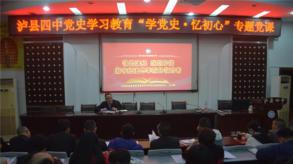 根据学校党史学习教育安排,4月12日,泸县四中举行党史学习教育推进会暨党委书记上专题党课活动。党委书记何淑清同志讲授了专题党课——《“学党史·忆初心”——中国共产党人的精神谱系》。全体教职工参加学习活动。