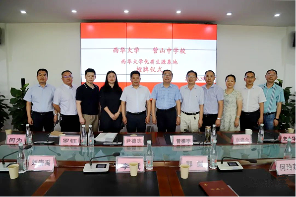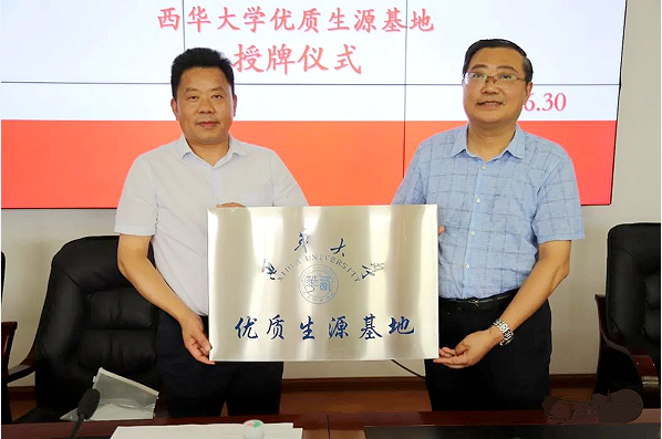 6月30日,西华大学“优质生源基地”授牌仪式在营山中学天伟馆三楼会议室举行。营山中学领导班子及西华大学马克思主义学院副院长尹德志、西华大学马克思主义学院思想教育系副主任罗钰、西华大学马克思主义学院何为博士出席授牌仪式。