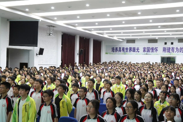 学生代表彭韵竹带领全体同学进行庄严宣誓。同学们立志成为具有“世界眼光、家国情怀、刚健有为的社会主义建设者和接班人”。