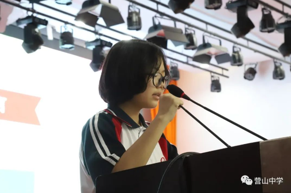 学生代表郑婧雨和大家分享了自己成长中的收获。她号召同学们端正学习态度,克服一切困难,努力成长为优秀的营中学子!