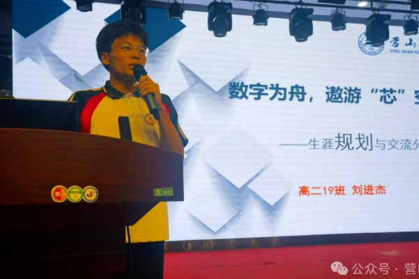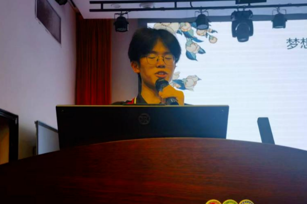第三个上场的是高2022级19班学生刘进杰,他演讲的题目是《数字为舟,遨游“芯”空——探寻电子的踪迹》。他以数学和物理两门学科的魅力入手,对当今世界电子信息工程专业做了详细的介绍,并指出中国对于芯片人才的大量需求,以及美国对中国芯片产业的打压等,提出了自己投身祖国电信工程领域的未来规划。