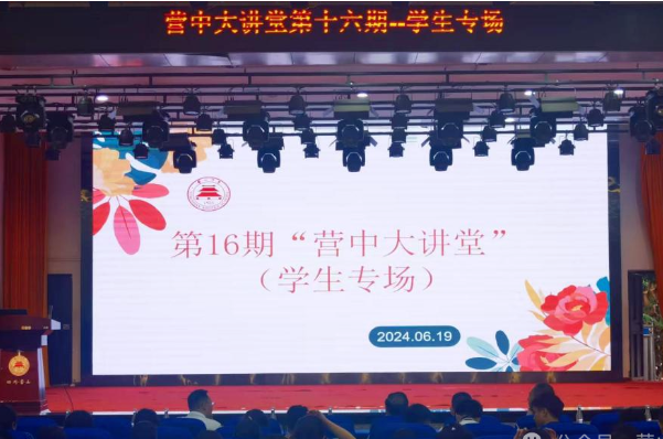 2024年6月19日上午,营中大讲堂第16期(学生专场)在学校天伟会堂开讲。