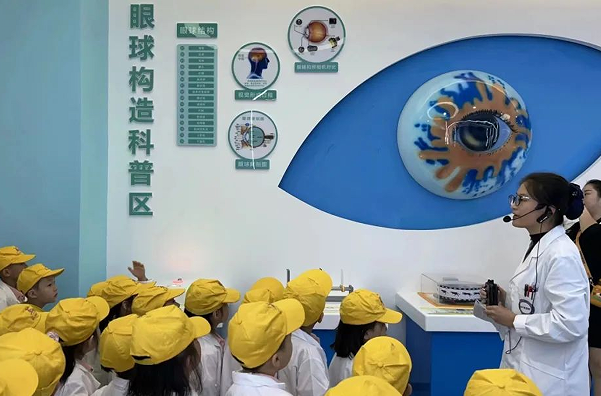 医护人员带领孩子参观科普基地,了解眼睛的构造,眼睛的作用以及眼睛的重要性,也让孩子们知道了人是通过眼睛看世界的。在参观过程中孩子们大胆的与医生交流,主动请教自己好奇和关注的问题,在互动中获得了更多更全面的知识与经验。