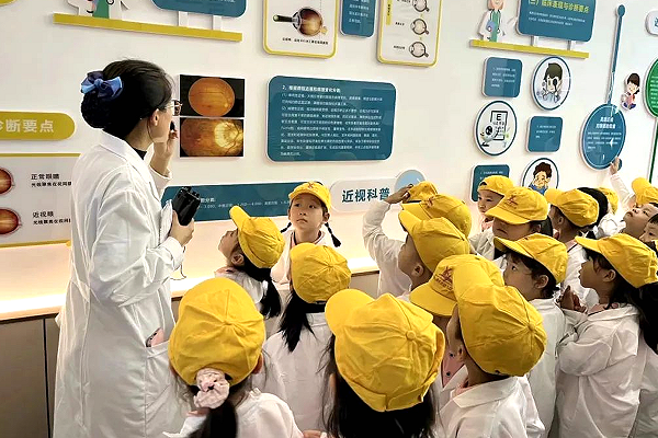 在医护人员的陪同下,孩子们参观了验光室、制镜室,随后医护人员为每个孩子进行细致的眼部检查,并为其建立健康档案。