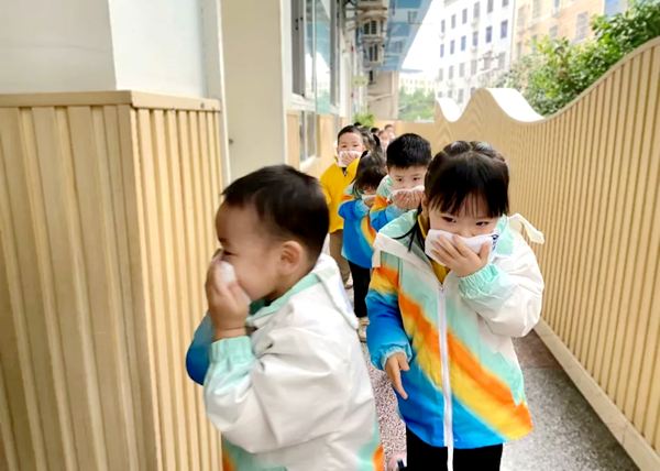 在演练前,各班开展了形式多样的消防安全教育活动,为实战演练奠定了基础。随着警报声的响起,老师们迅速按照预案行动,引导小朋友们用湿毛巾捂住口鼻,弯腰低姿,沿着安全通道有序撤离到安全区域。整个疏散过程快速而有序,师幼们表现出了良好的应急反应能力。