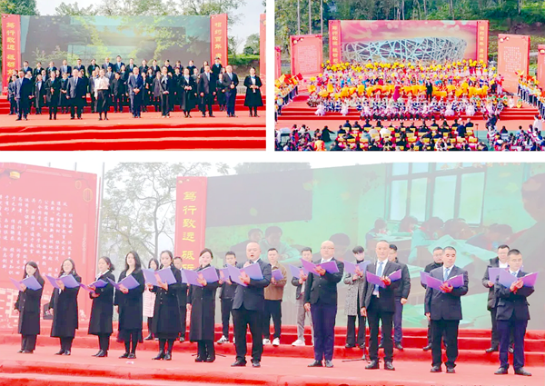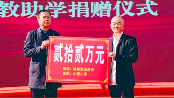 相约百年,赓续华章。11月27日,营山县小桥完全小学100周年办学成果展暨奖教助学捐赠仪式在学校操场隆重举行。营山县委常委、宣传部部长张华,县人大常委会副主任张晓红,县政协副主席罗永强,县委统战部常务副部长曾涛,县工商联、县总商会会长苏华,县工商联党组成员、副主席杨来春,县教科体局、县教科所领导、县直属教育督导组,成都营山商会名誉会长白渠,商会执行会长、第四季度轮值会长李超,商会秘书长吴伟涛, 政协商会委员联络组组长覃军,商会副会长肖霖阳、李一鑫、白果、尹思程、李富贵,商会副秘书长李博,商会理事肖建平、商会理事单位代表李政以及各兄弟学校校(园)长及教师代表、部分校友及嘉宾200余人,欢聚一堂,共同见证了学校百年历史的光辉时刻。