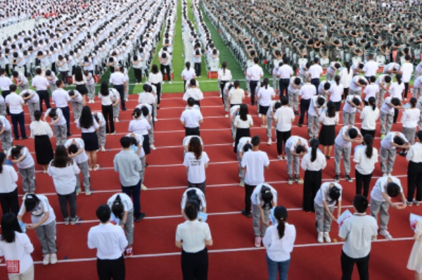 云天收夏色,木叶动秋声。9月13日我校迎来了2023年秋季开学典礼暨表彰大会。全校师生以及学生家长代表欢聚新校区田径运动场参加本次典礼。本次典礼由分管德育工作的副校长段炼和学工处副主任左文飞主持。