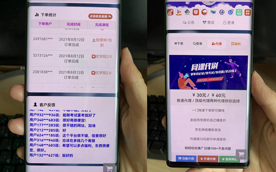 在一个网络刷课平台,学生可以选择多种课程平台刷课,甚至可以成为代理。 叶雨婷/摄