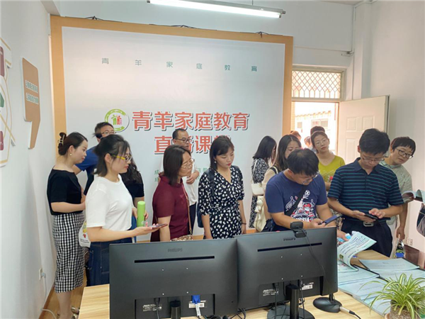 在青羊区家庭教育科研室主任李萍的详细解说下,宝鸡市第一中学教师从基地的展板到独具特色的功能室、家委会办公室、直播课堂,全面了解了基地构建的六大空间——亲子实践空间、孵化空间、互动空间、成长空间、直播空间及学习空间的功能、设施、作用和价值。