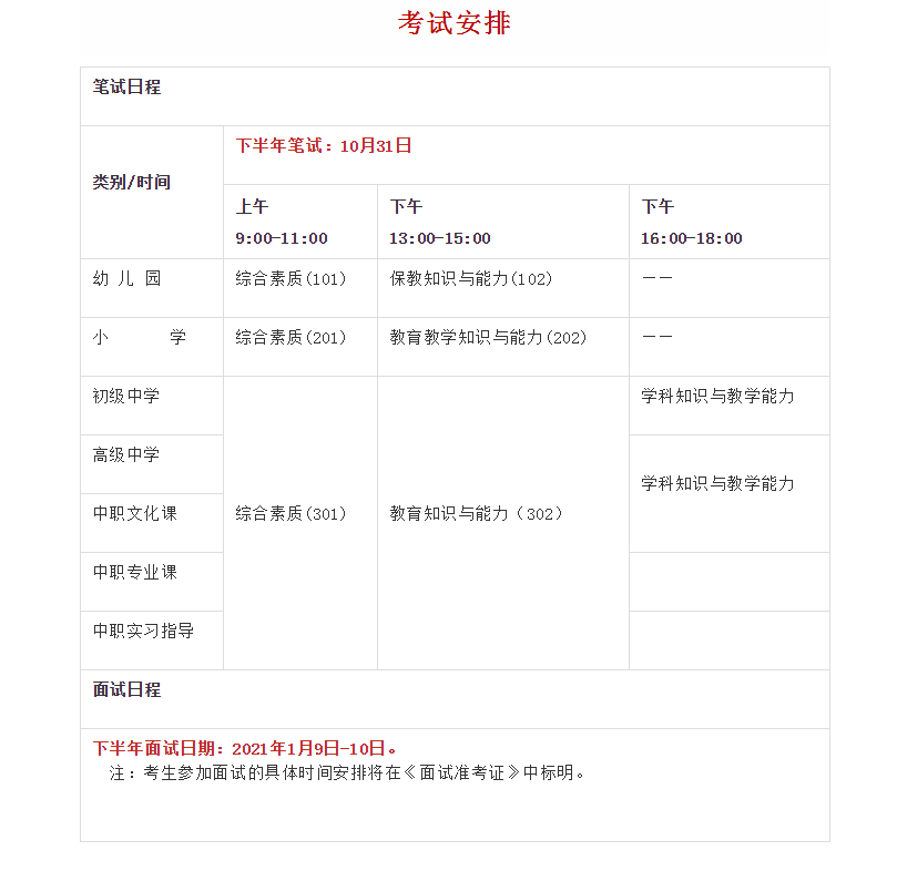 2020年下半年中小学教师资格考试笔试报名时间:2020年9月上旬(具体安排届时以各省考试机构报名公告为准);笔试时间:2020年10月31日。