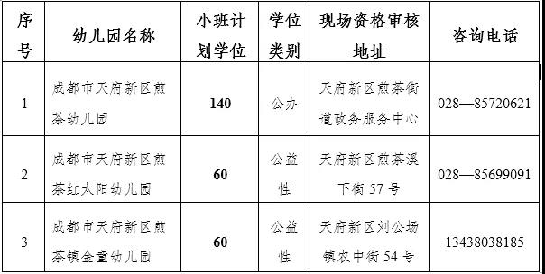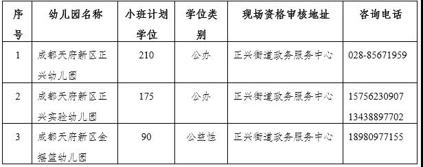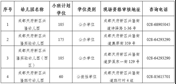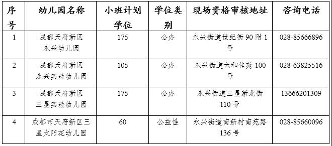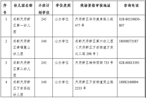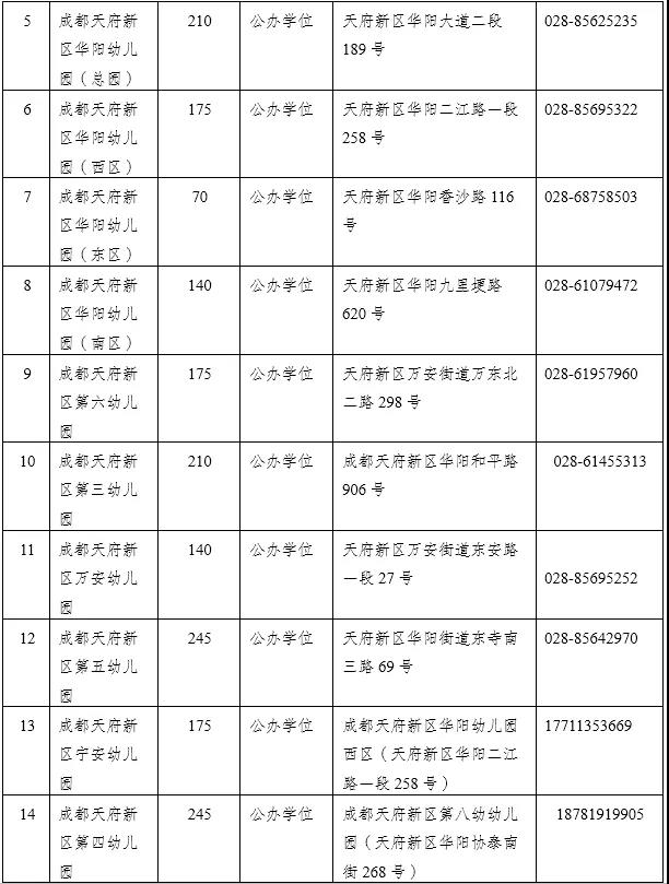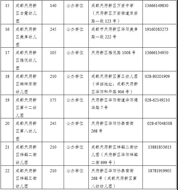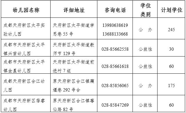备注:成都天府新区白沙幼儿园和成都天府新区白沙实验幼儿园采取合并登记。