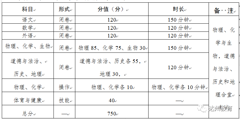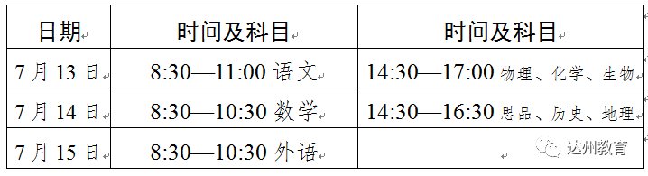 达州市今年中考文化科目考试时间为7月13日至15日。