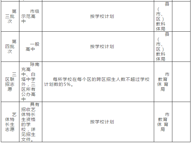 (2)经批准,可跨县(区)调节性计划招生的学校有:市十五中、市大河中学、攀枝花市艺体中学(市十二中),但不得突破跨县(区)调节性招生计划。