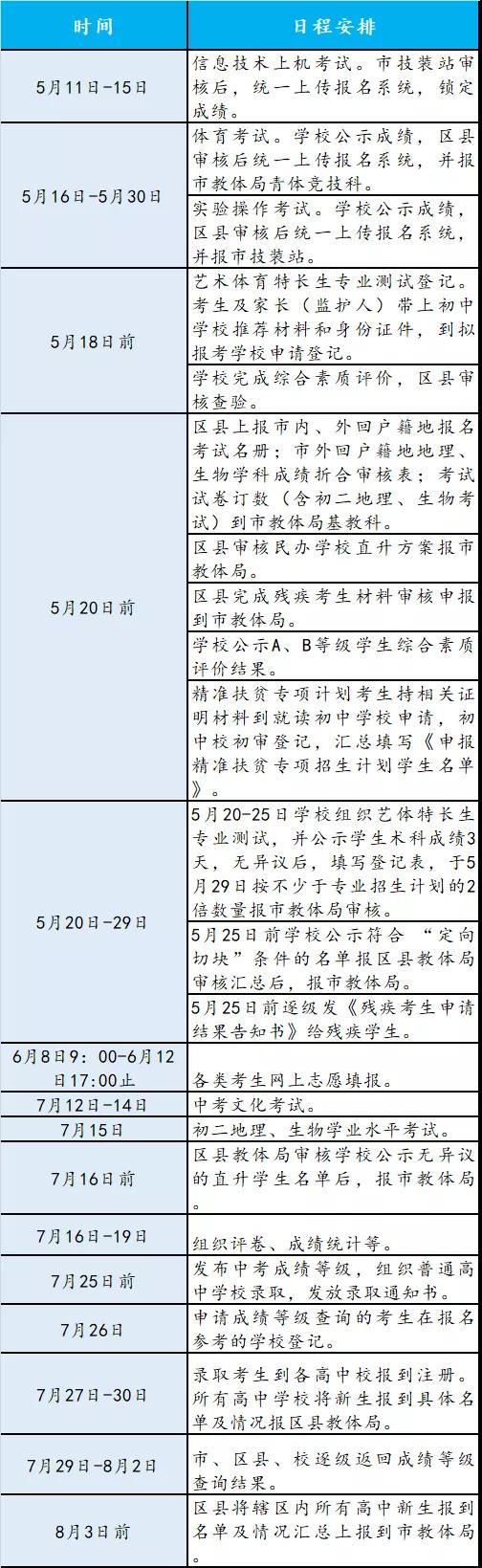 除此之外以下2020年中考安排请广大考生及家长注意: