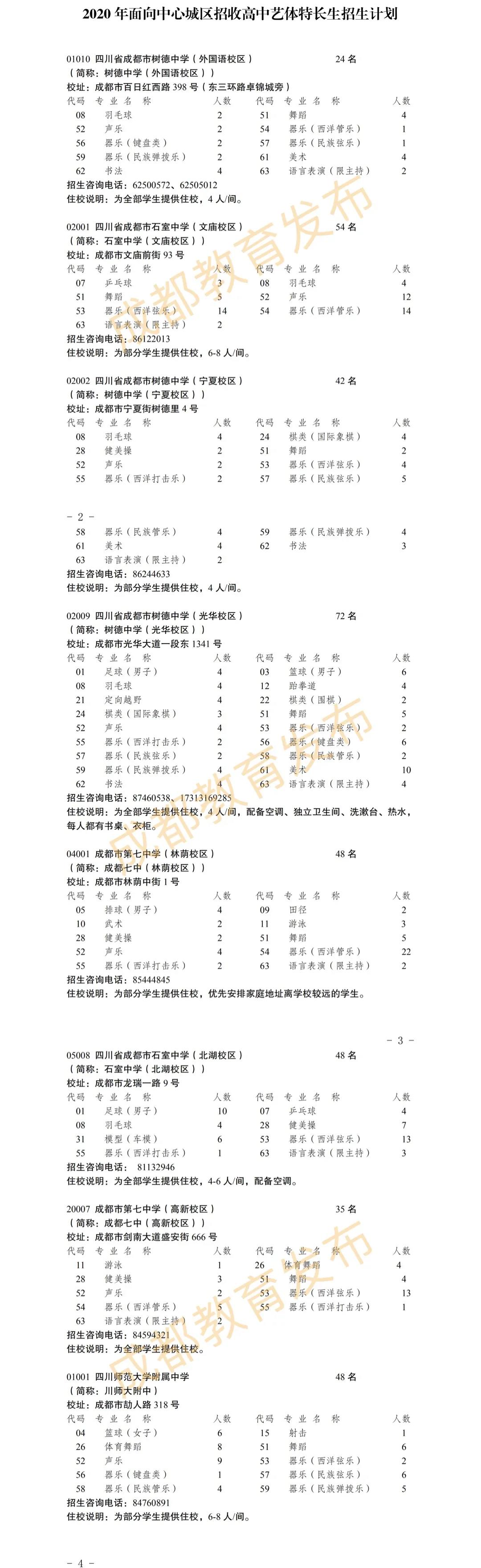 2020年高中学校面向中心城区招收艺体特长生的招生计划由市教育考试院统一公布。