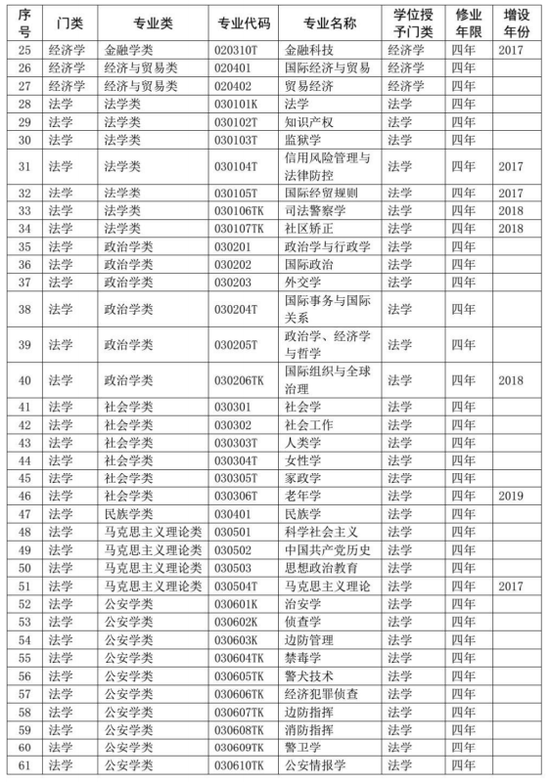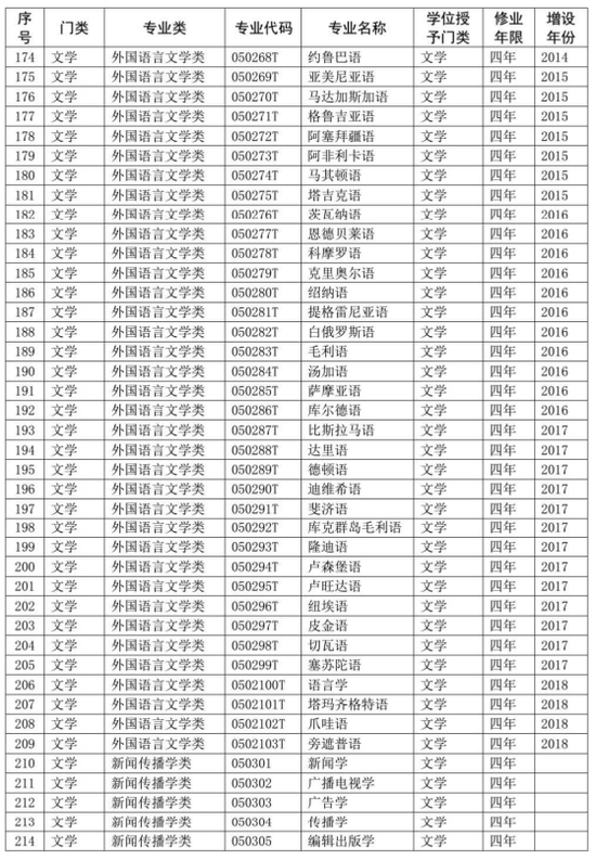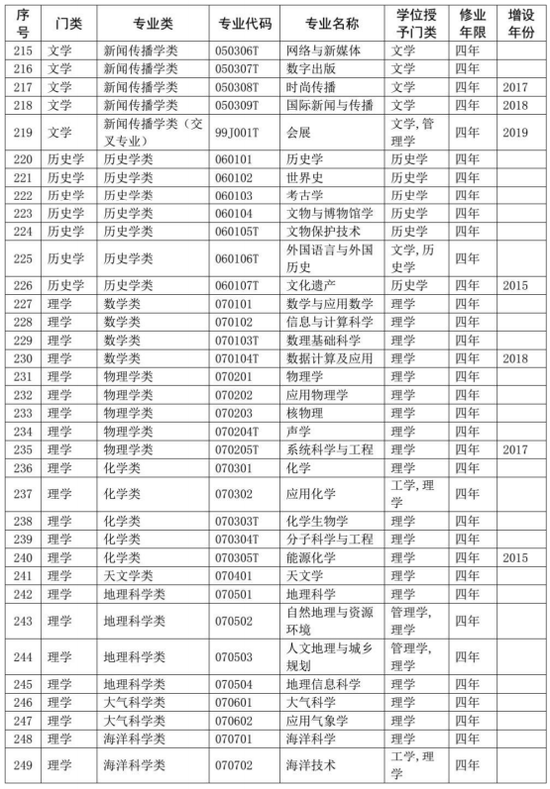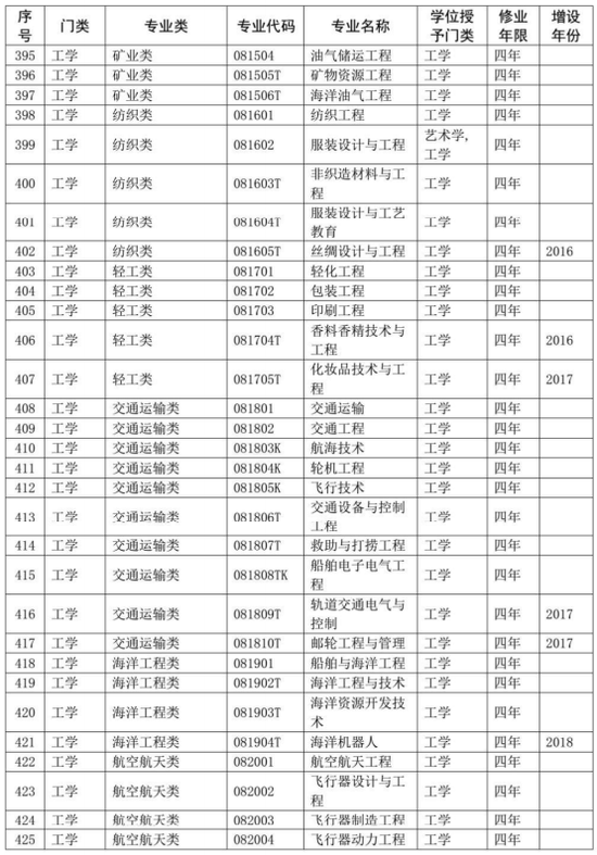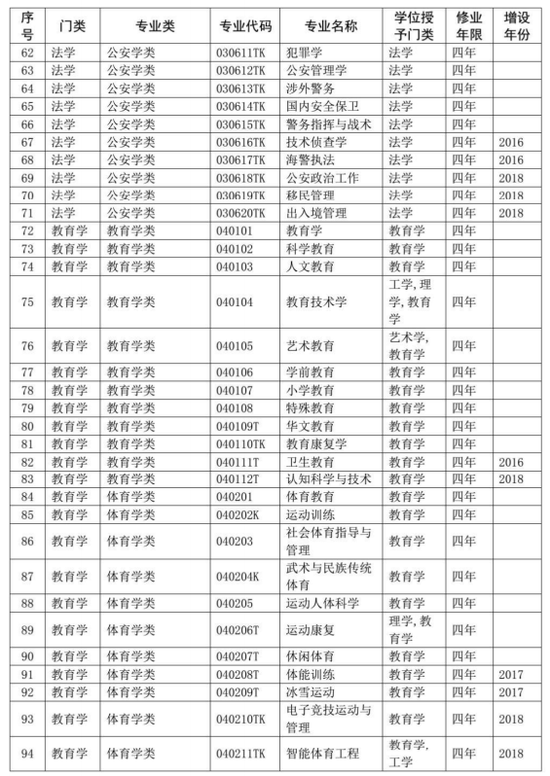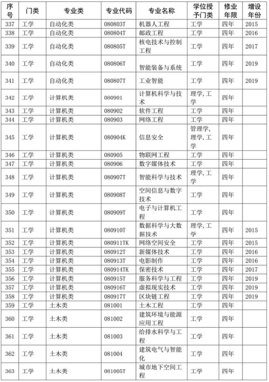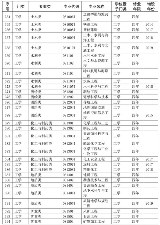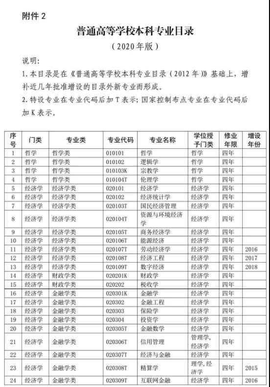 同时,在《普通高等学校本科专业目录(2012年)》基础上,增补了近年来批准增设的目录外新专业,形成了最新的《普通高等学校本科专业目录(2020年版)》,一并予以公布。新版本科专业共703个,详细如下。