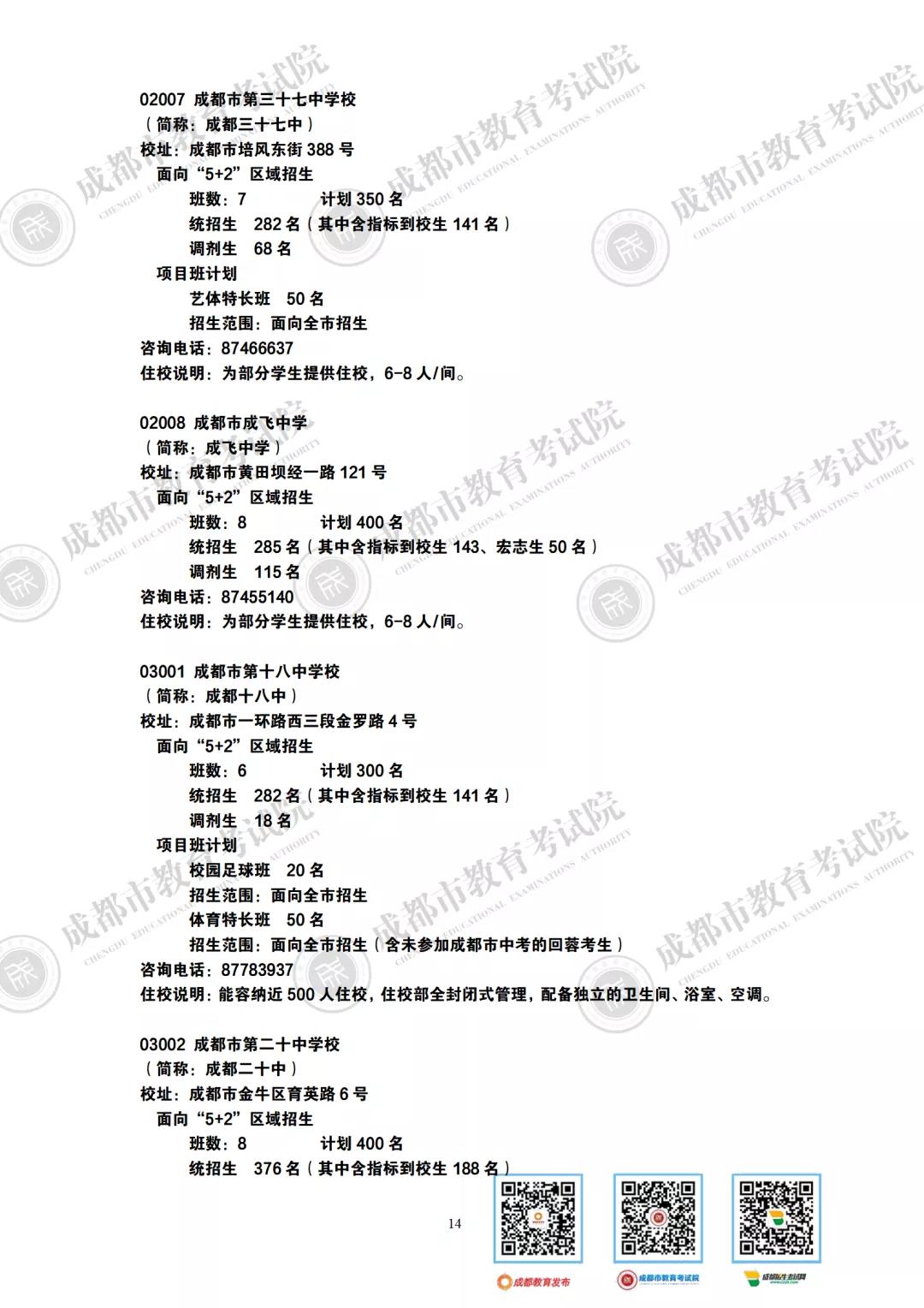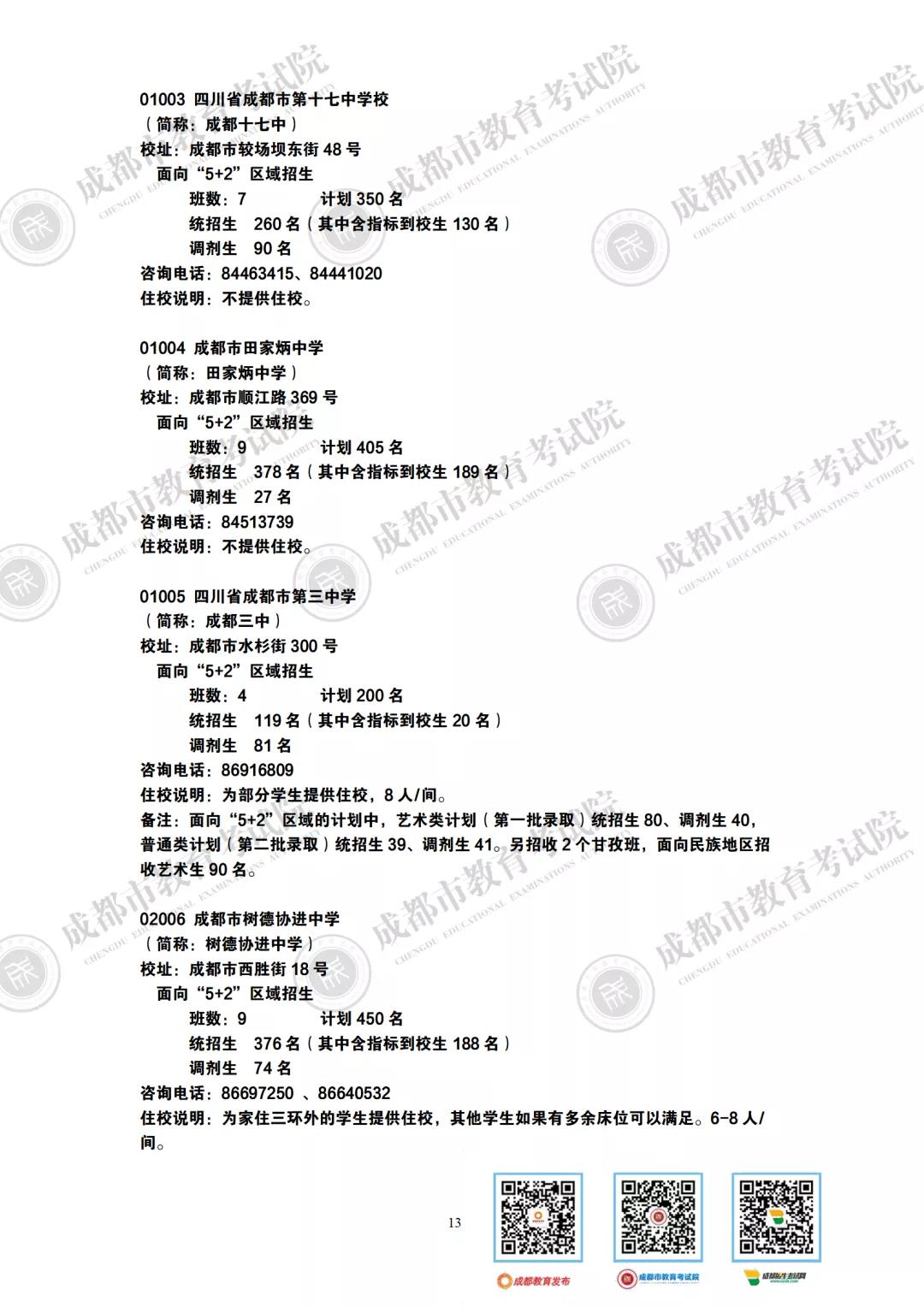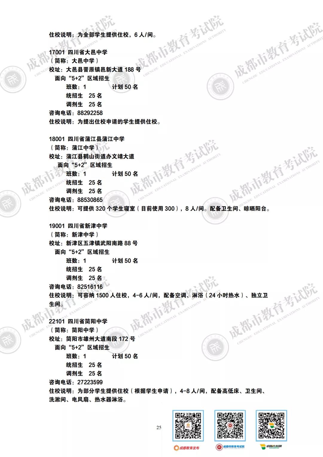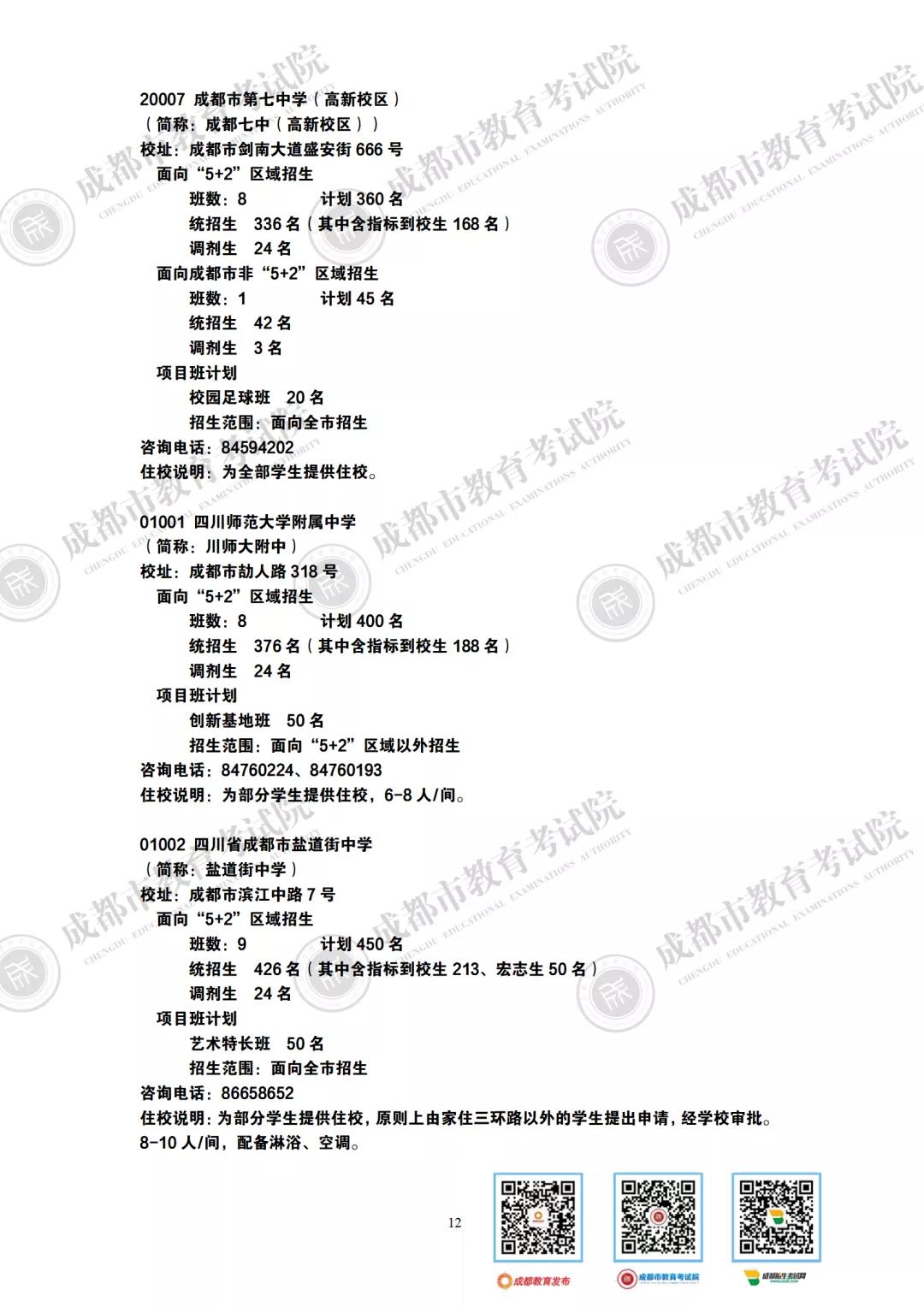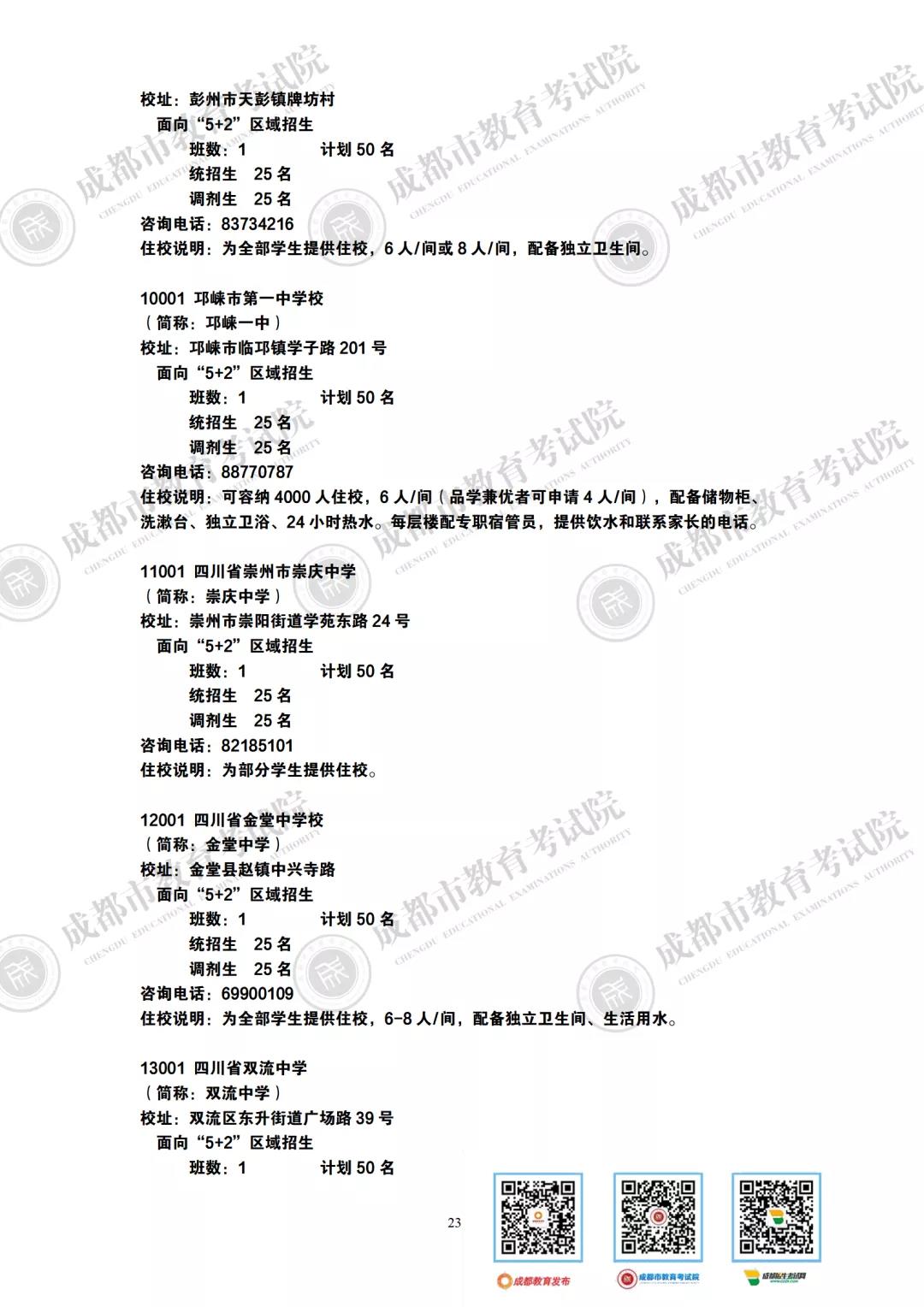 今年,石室中学、成都七中和树德中学等“5+2”区域的优质高中学校面向成都市全市(含非“5+2”区域)招收41个班。棠湖中学、双流中学、新都一中、龙泉中学、温江中学、大弯中学、郫都一中、简阳中学、新津中学、大邑中学、彭州中学、金堂中学、崇庆中学、蒲江中学、邛崃一中等非“5+2”区域的优质高中学校面向“5+2”区域招收26个班1300人,较2019年增加13个班650人。