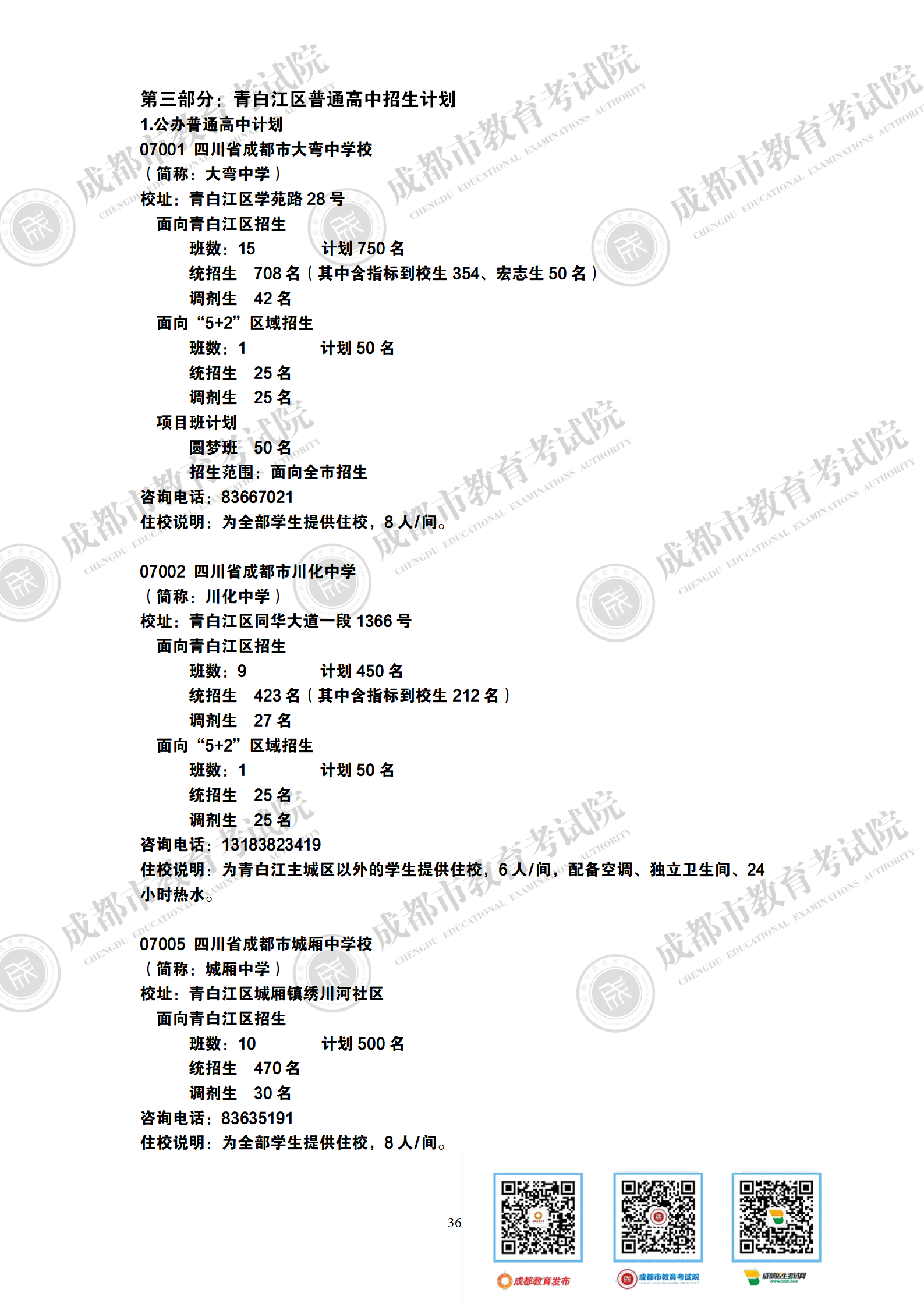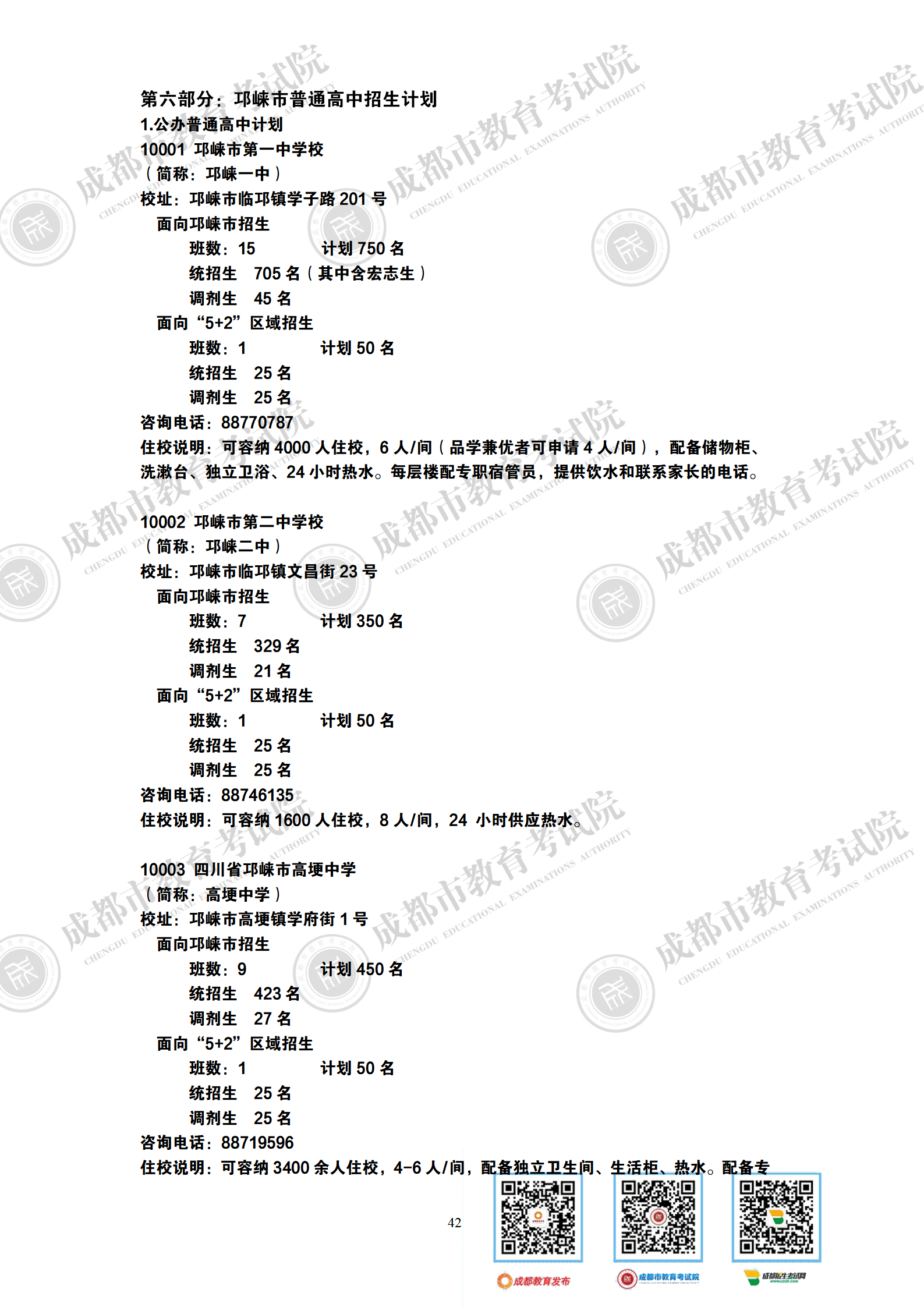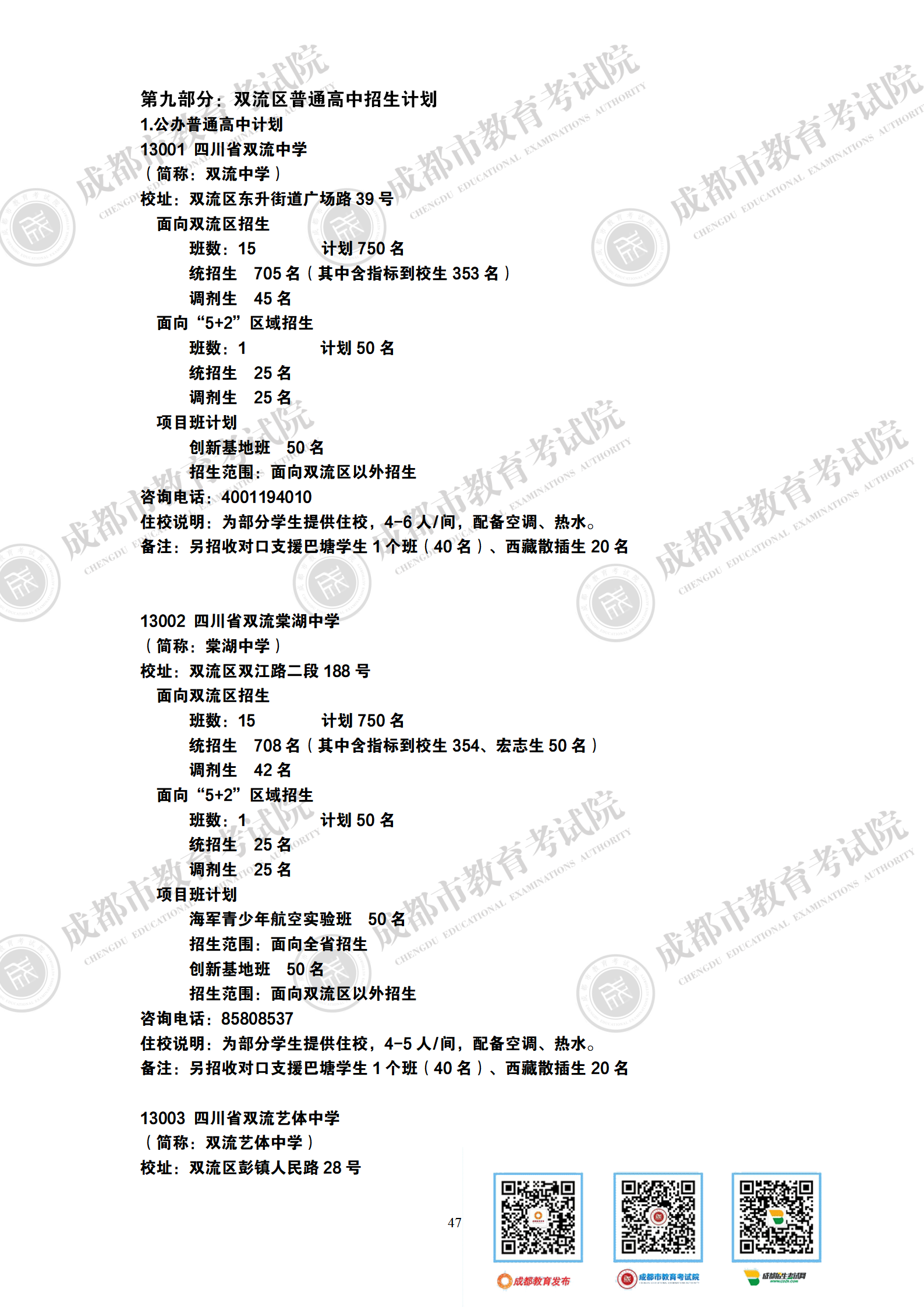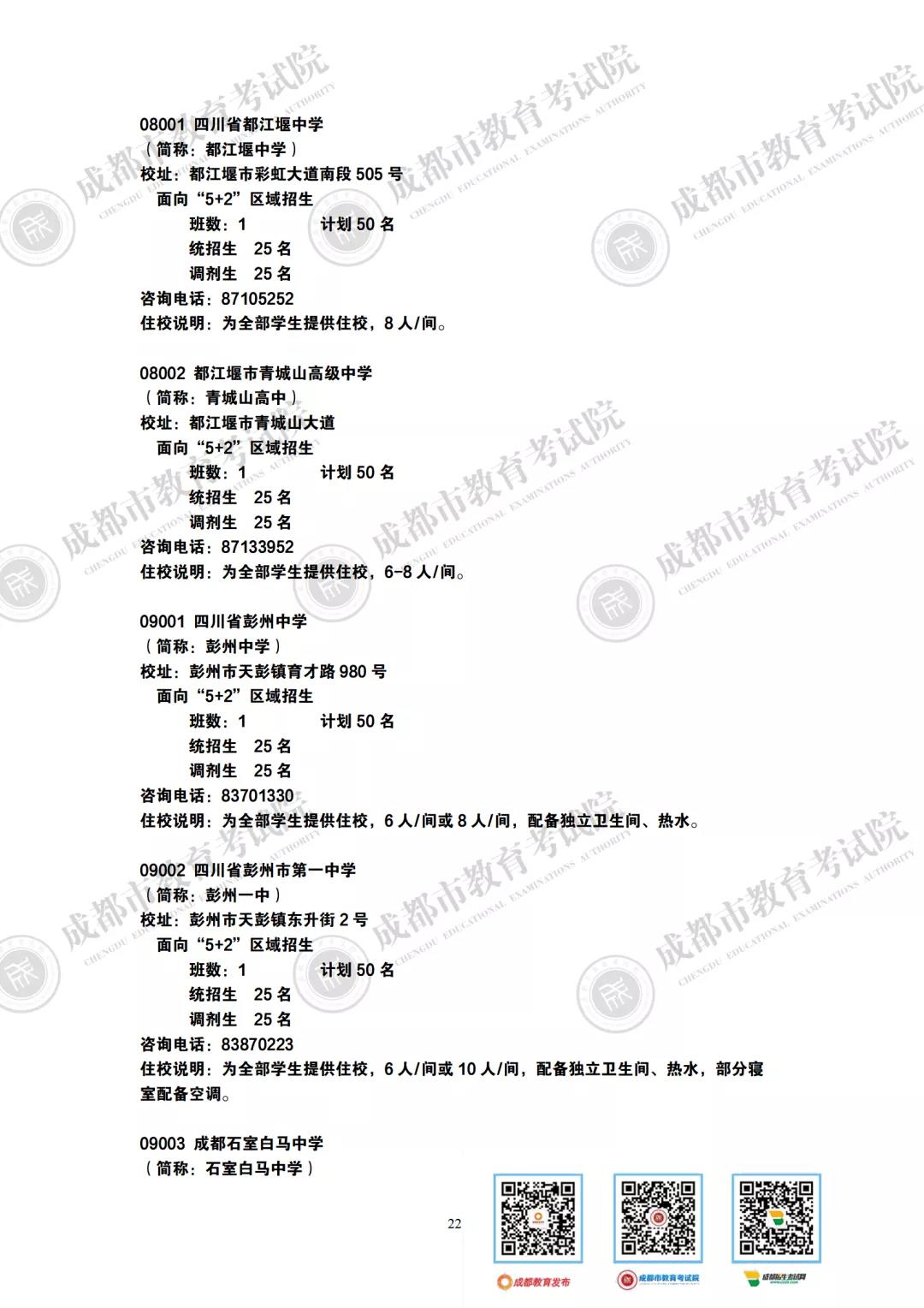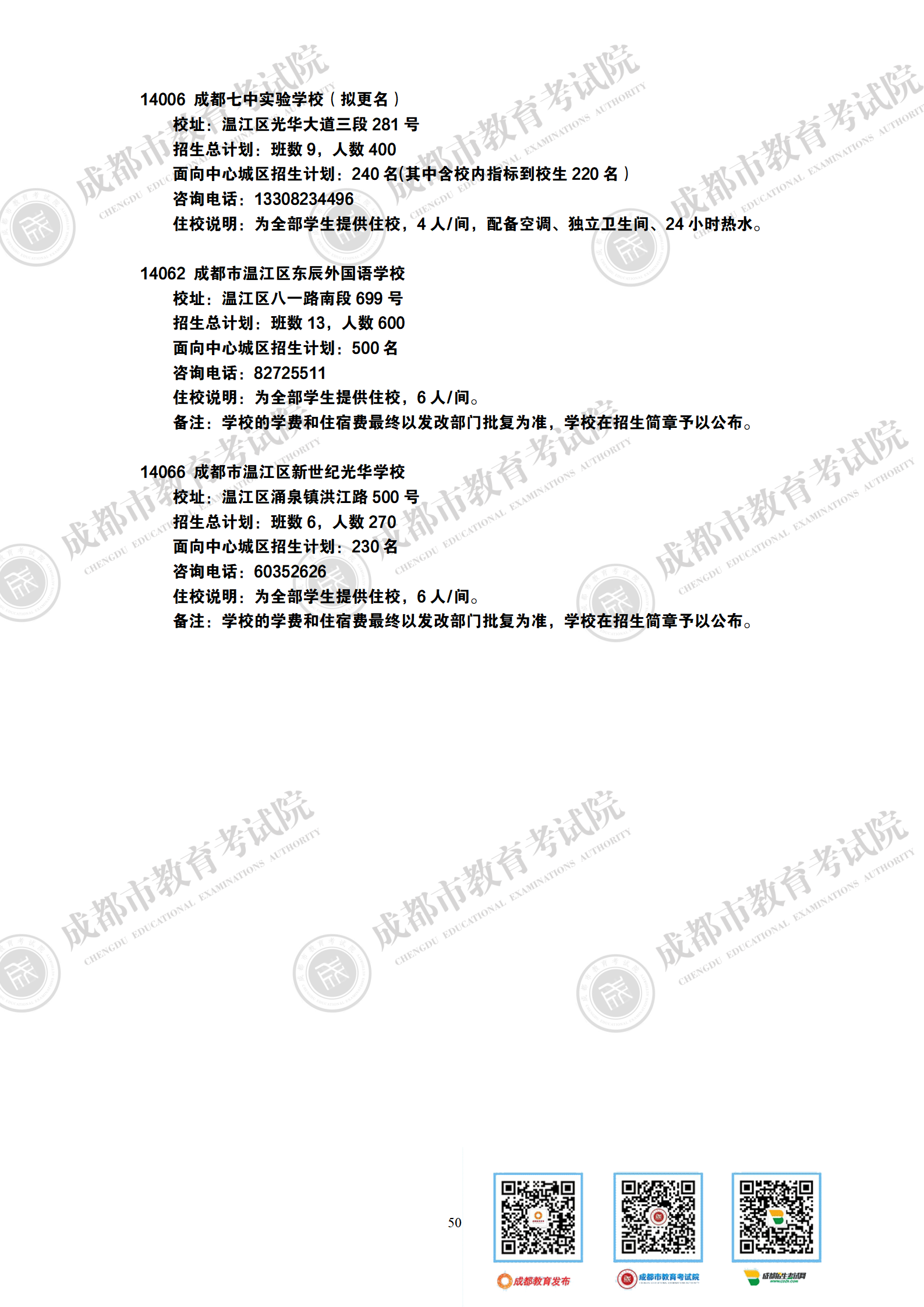 今年,石室中学、成都七中和树德中学等“5+2”区域的优质高中学校面向成都市全市(含非“5+2”区域)招收41个班。棠湖中学、双流中学、新都一中、龙泉中学、温江中学、大弯中学、郫都一中、简阳中学、新津中学、大邑中学、彭州中学、金堂中学、崇庆中学、蒲江中学、邛崃一中等非“5+2”区域的优质高中学校面向“5+2”区域招收26个班1300人,较2019年增加13个班650人。