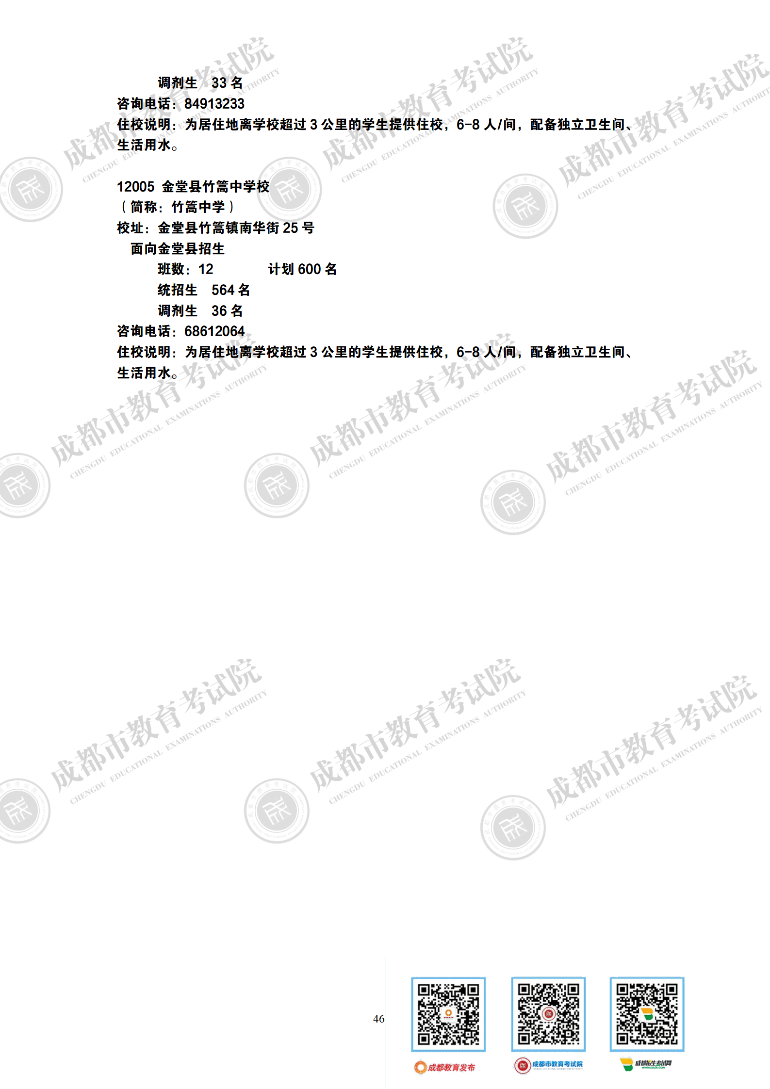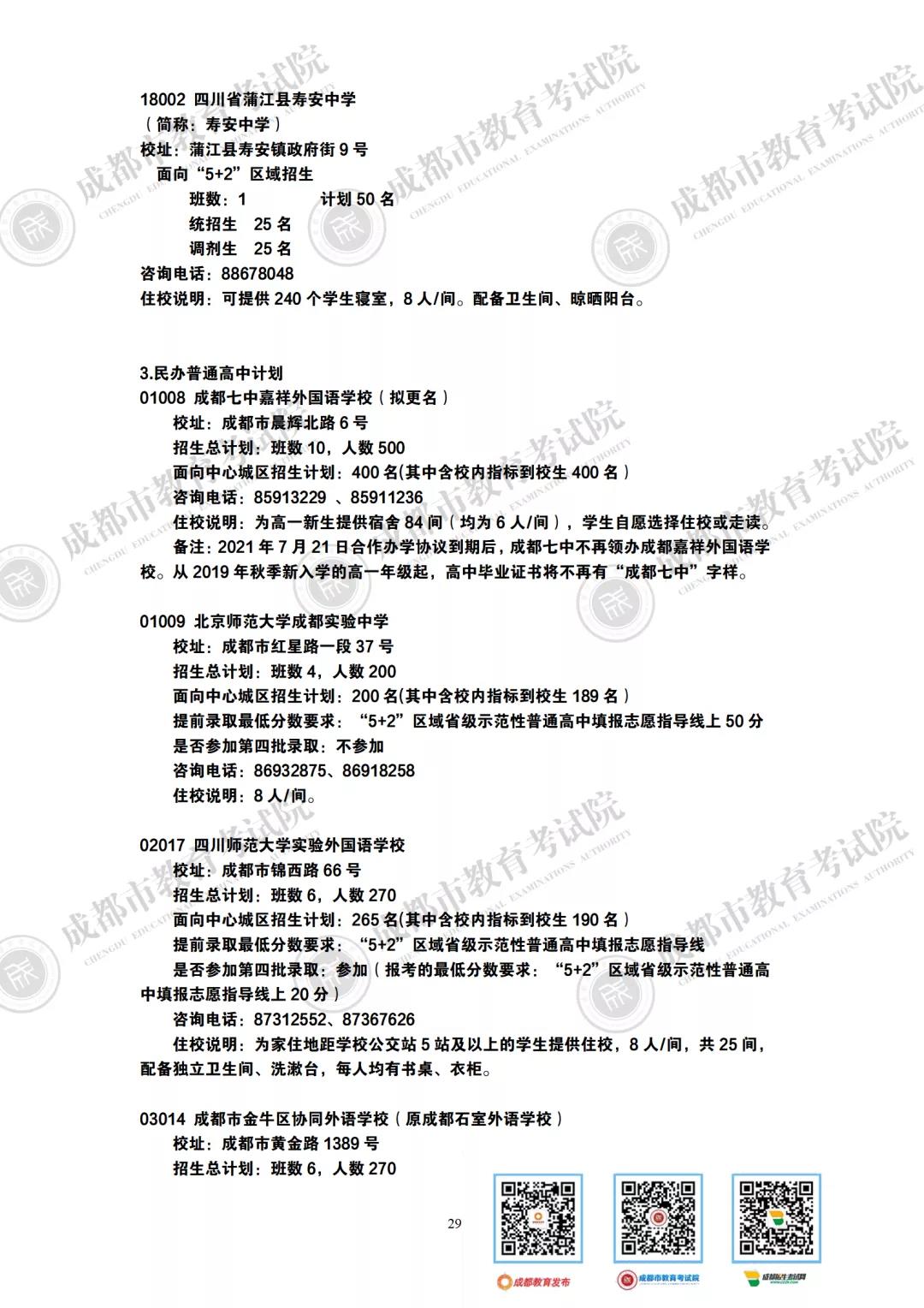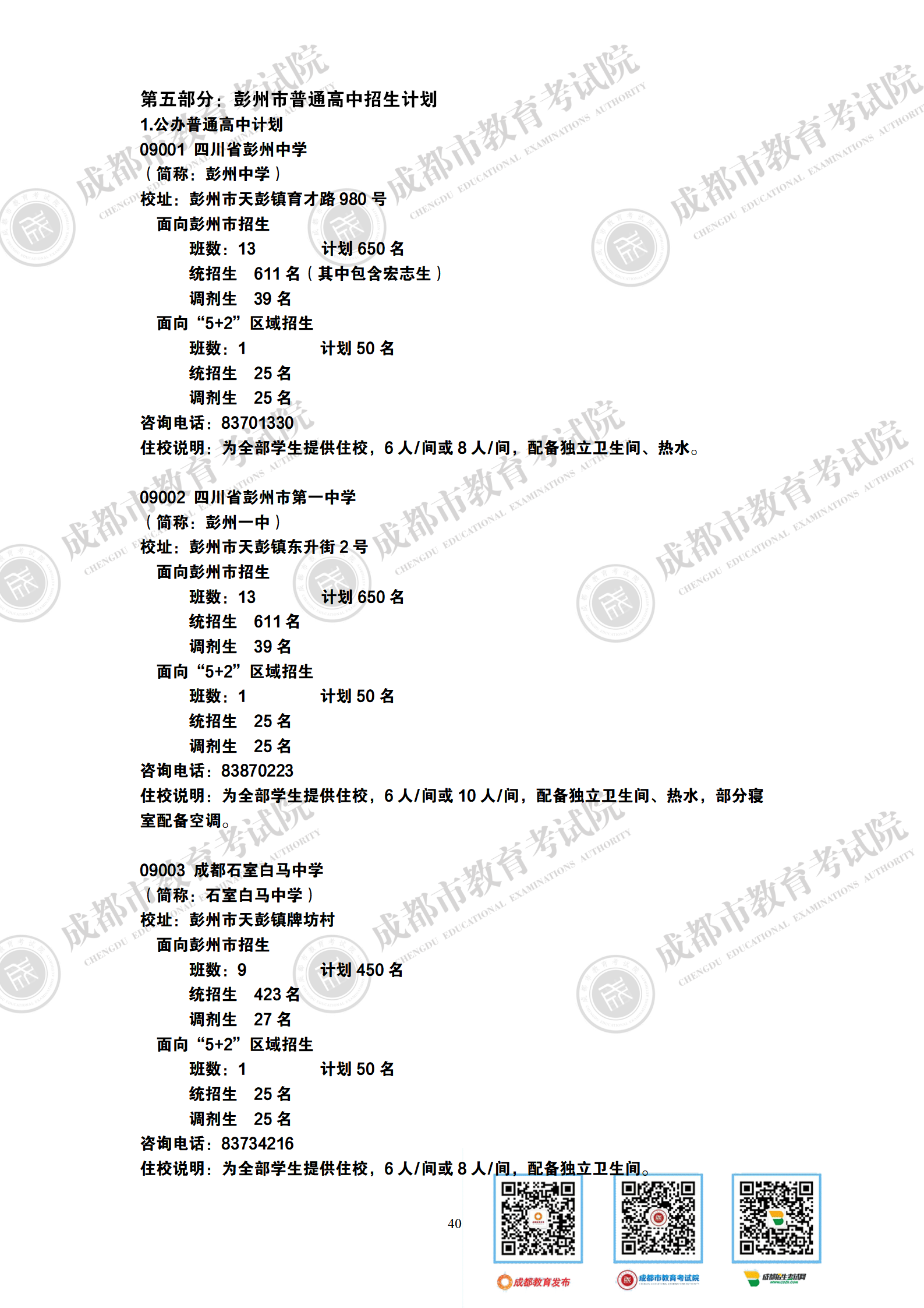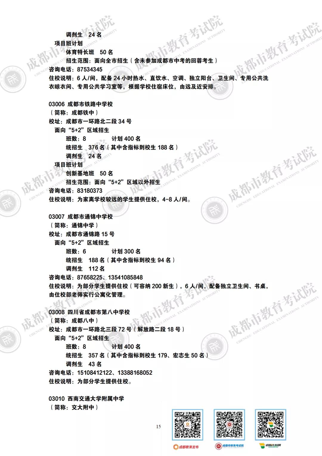 今年,石室中学、成都七中和树德中学等“5+2”区域的优质高中学校面向成都市全市(含非“5+2”区域)招收41个班。棠湖中学、双流中学、新都一中、龙泉中学、温江中学、大弯中学、郫都一中、简阳中学、新津中学、大邑中学、彭州中学、金堂中学、崇庆中学、蒲江中学、邛崃一中等非“5+2”区域的优质高中学校面向“5+2”区域招收26个班1300人,较2019年增加13个班650人。