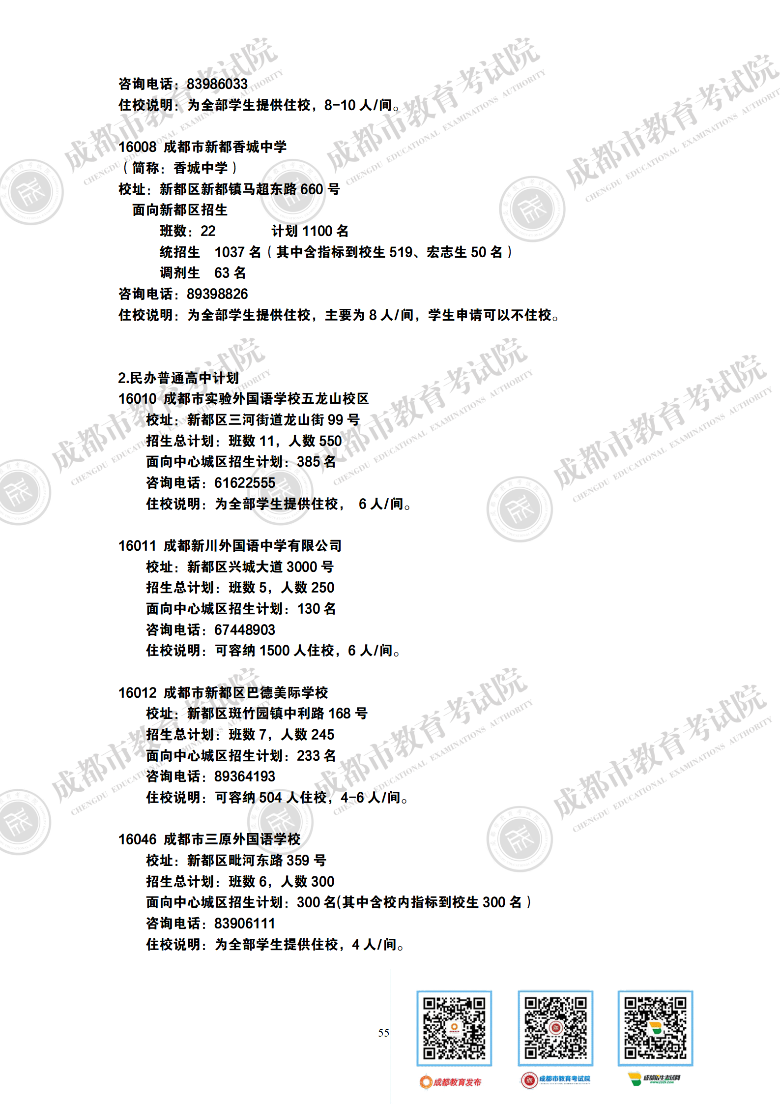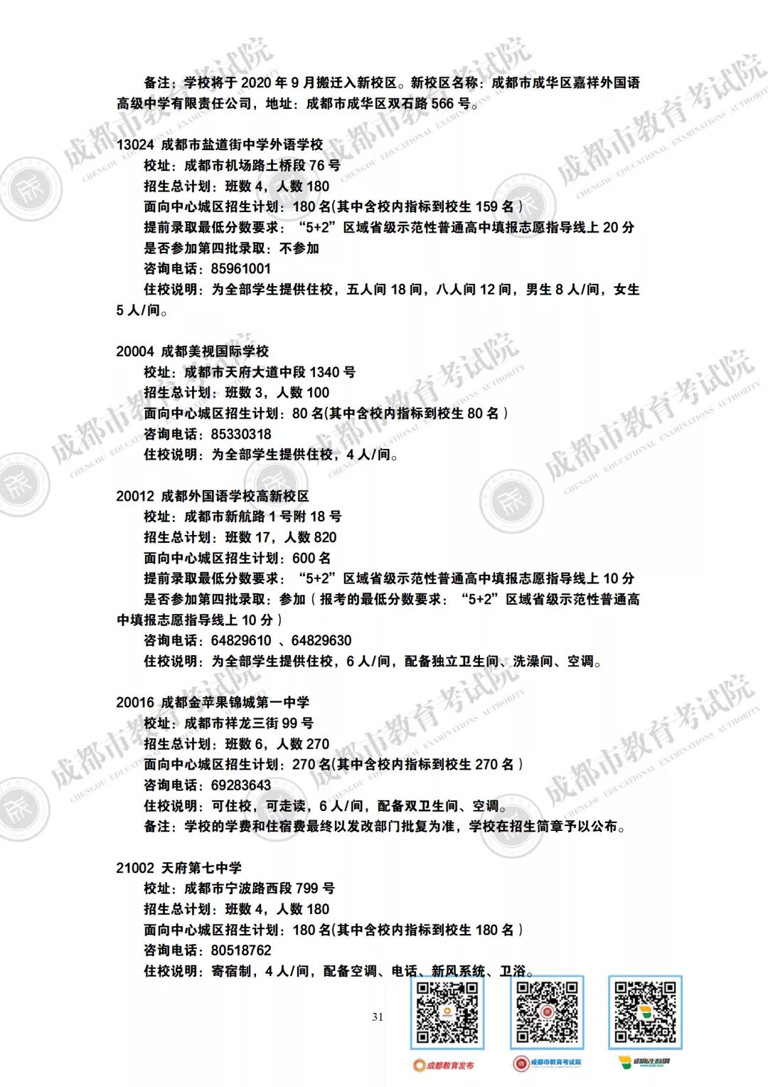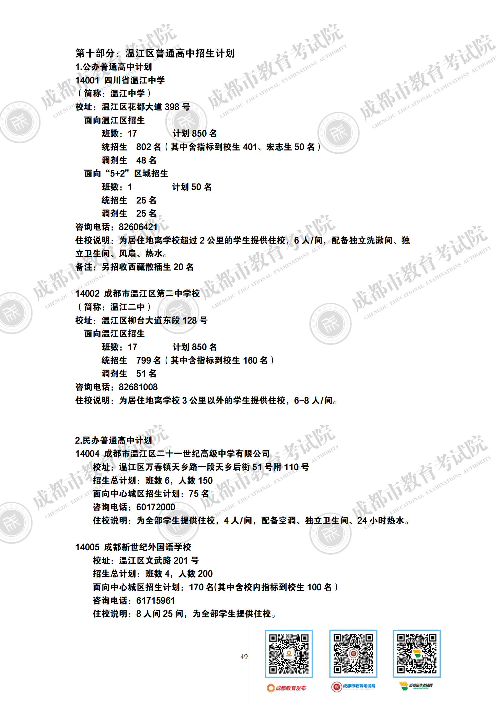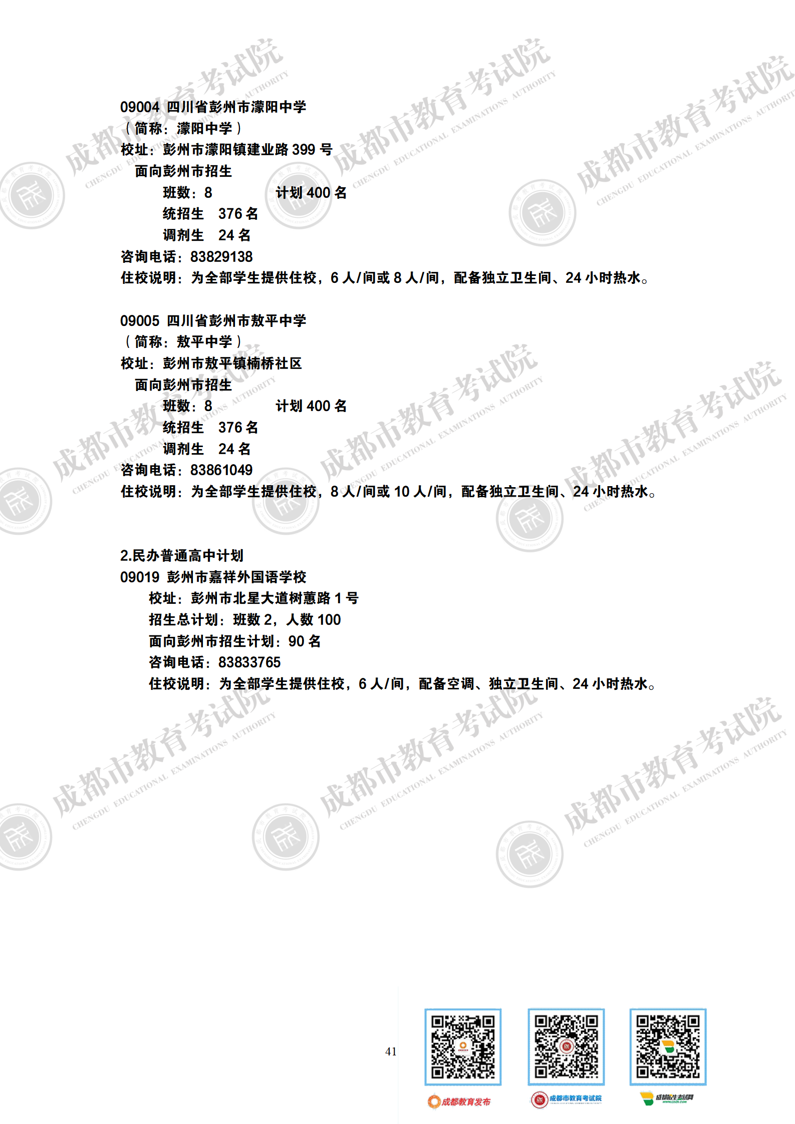 2020年全市中考报名人数12.41万人。按照教育部、省教育厅关于普职招生规模大体相当的要求,结合成都实际,2020年全市普通高中招生计划为1532个班74760人,较2019年增加89个班,增招4691人。2020年全市普通高中招生计划达全市中考报名学生总数的60%。