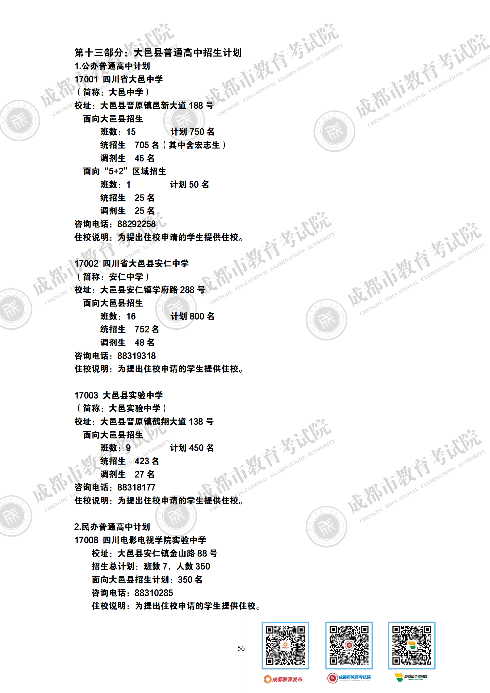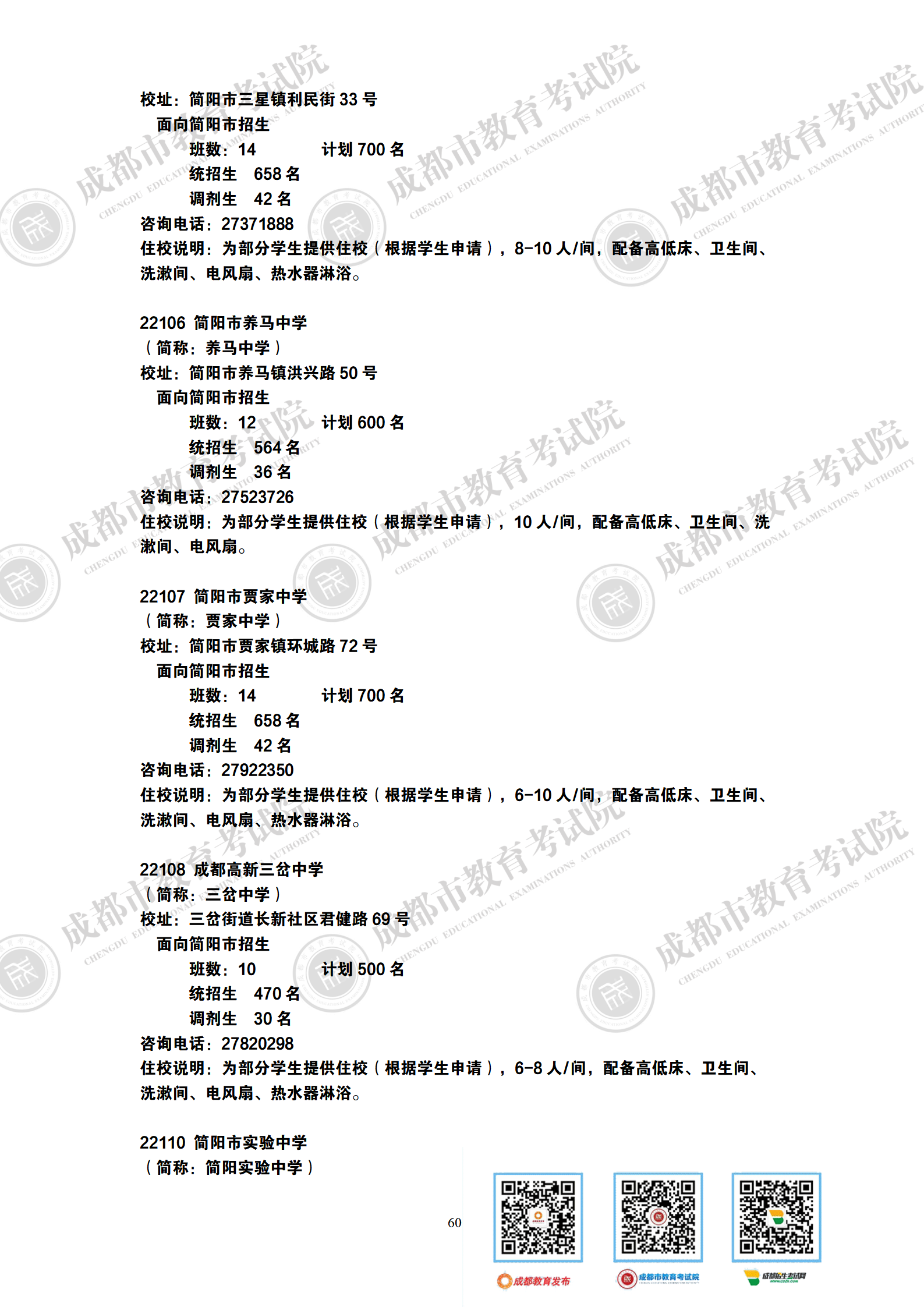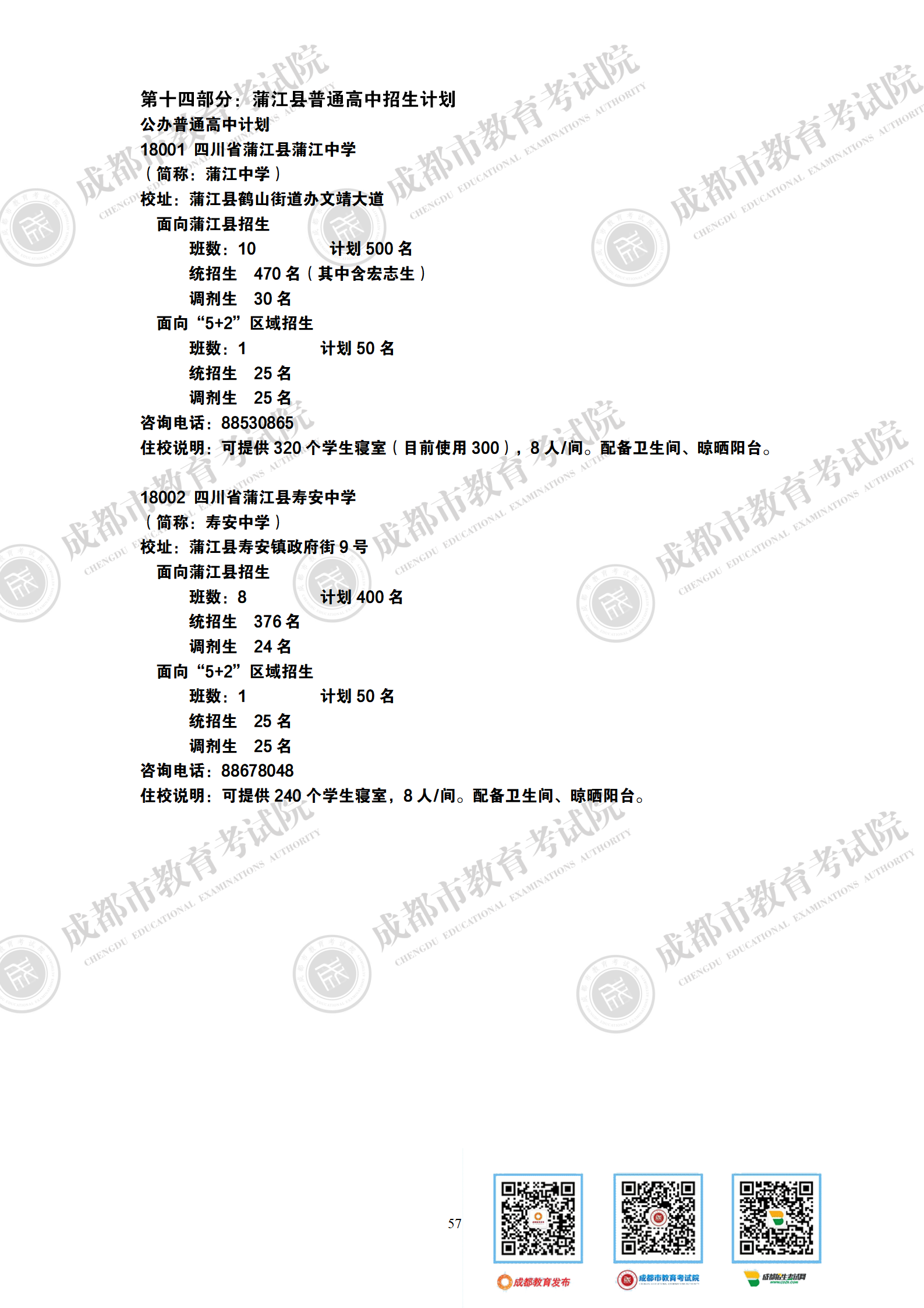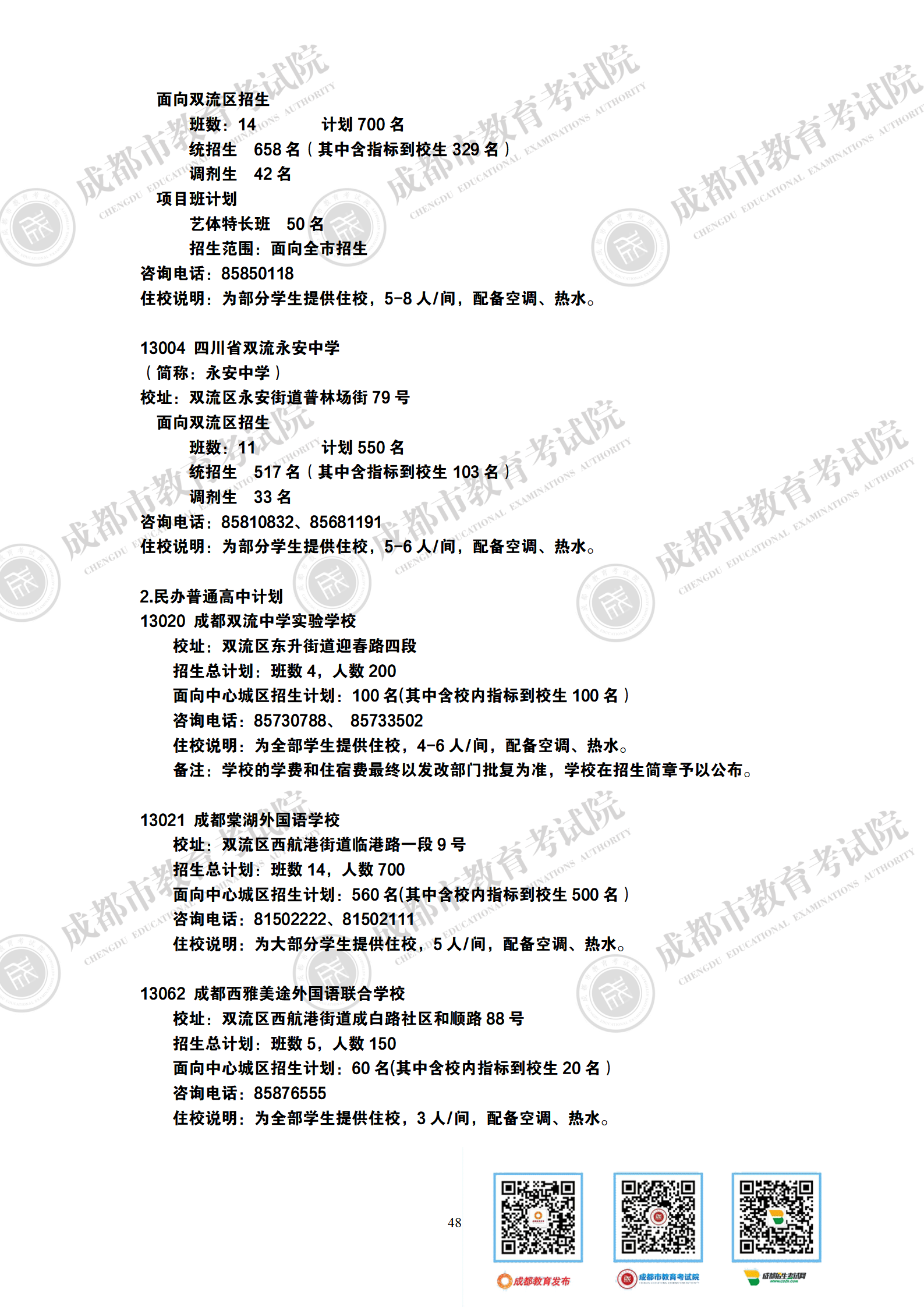 2020年全市中考报名人数12.41万人。按照教育部、省教育厅关于普职招生规模大体相当的要求,结合成都实际,2020年全市普通高中招生计划为1532个班74760人,较2019年增加89个班,增招4691人。2020年全市普通高中招生计划达全市中考报名学生总数的60%。