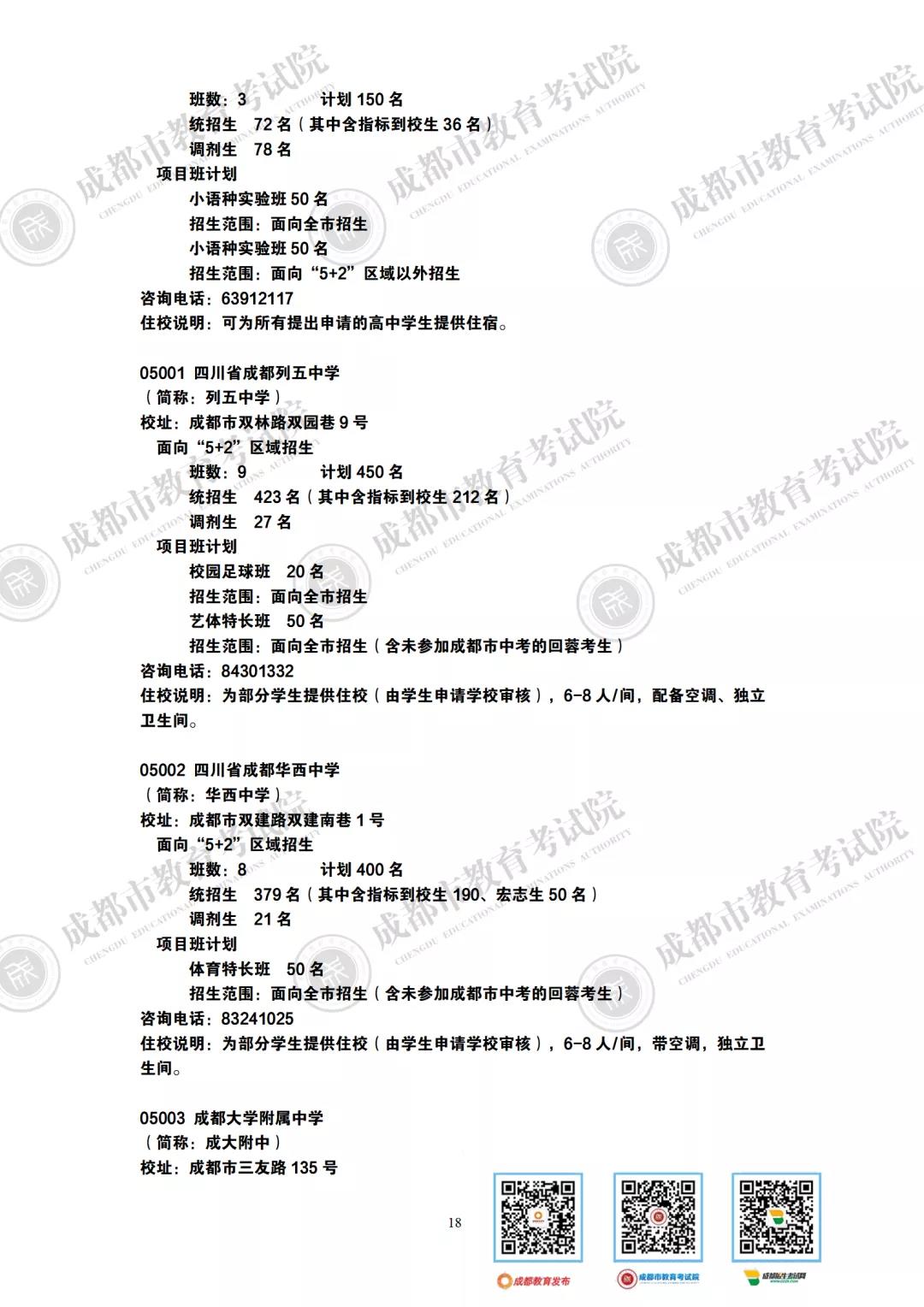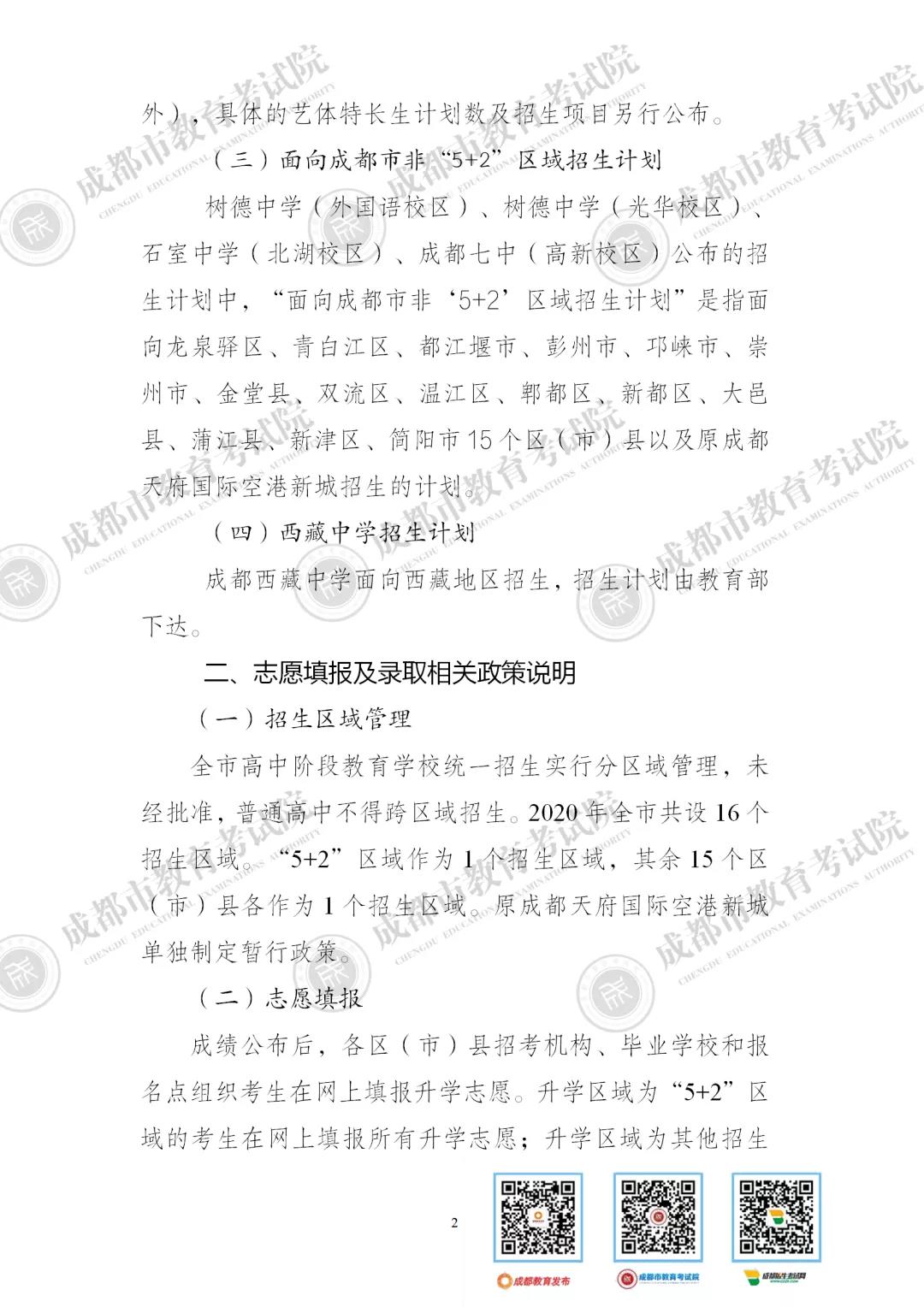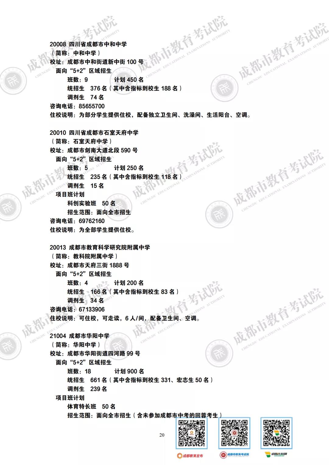 按照《四川省教育厅关于规范2020年全省普通中小学招生入学工作的通知》(川教函〔2020〕139号)明确提出:“省级示范性公办普通高中统招生计划的50%以上要合理分配到服务区内的初中学校,并适当向薄弱初中、农村初中倾斜”的要求,全市公办省级示范高中统招生计划的50%分配到区域内的初中学校。为推动义务教育优质均衡发展,培育更多“家门口的好学校”,今年,市、区(市)县两级教育行政部门在市级统分指标和区域指标分配上重点向公办初中强校工程实验校倾斜。例如,市教育局将石室中学、成都七中和树德中学市级统分指标向“5+2”区域18所公办初中强校工程实验校分配指标生99个,各城区向18所公办初中强校工程实验校分配区域指标554个(详见延伸阅读二)。