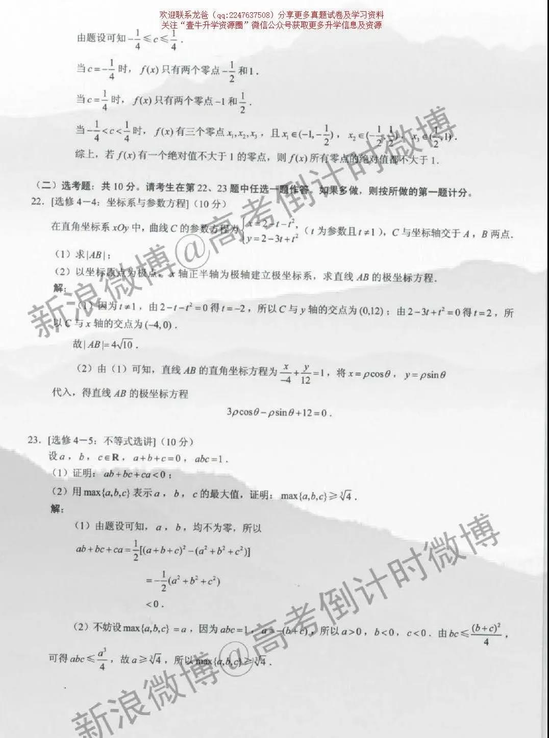 全国Ⅲ卷适用地区(云南、广西、贵州、四川、西藏)