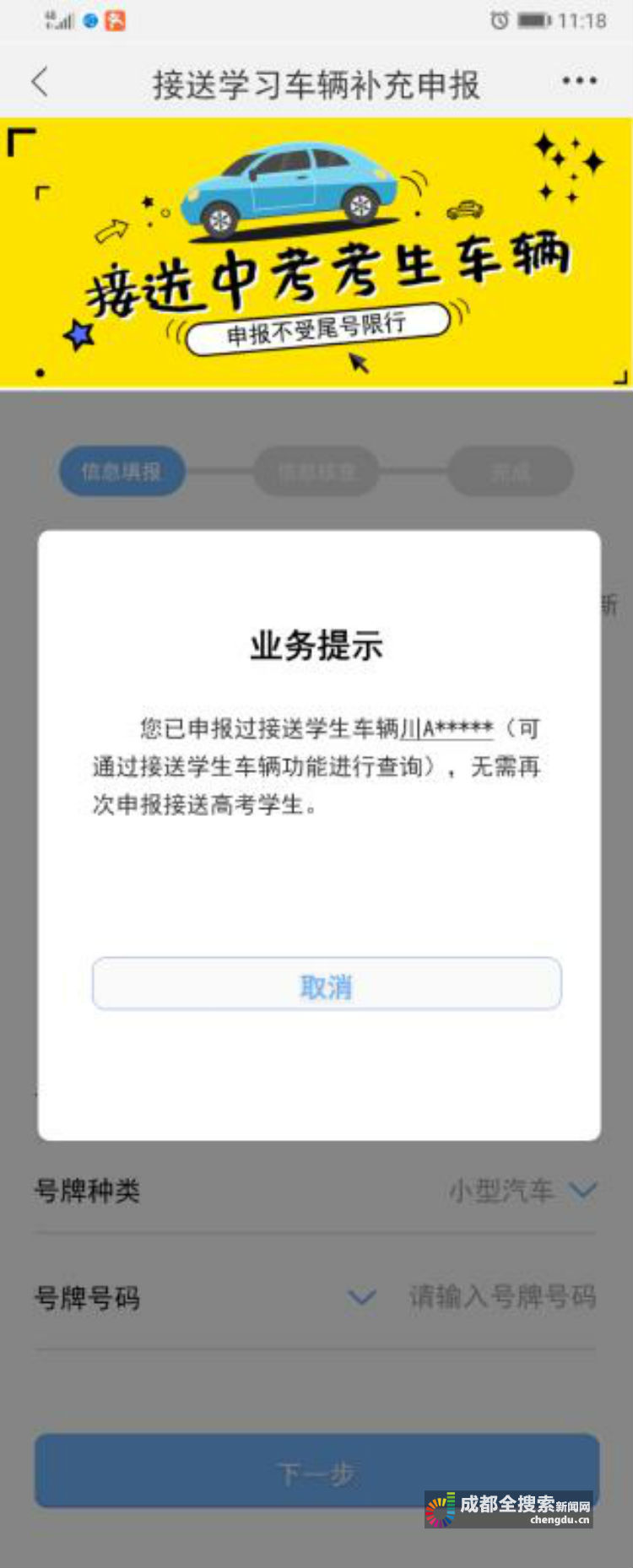 3、接送考生的家长可以申报非营运的小型汽车,但每个考生家长本次只能申报1台接送车辆,川A、非川A牌照车辆均可申报。
