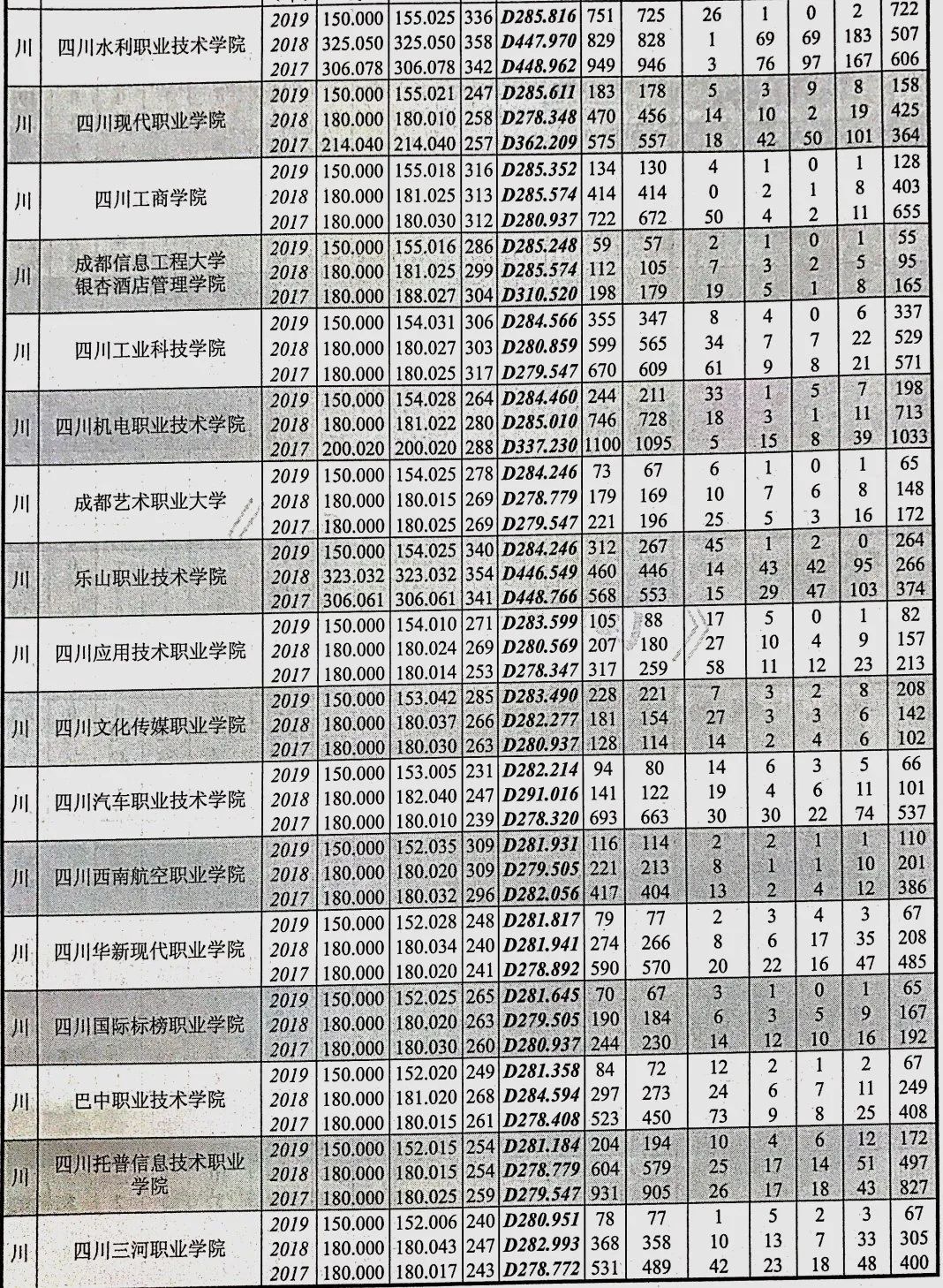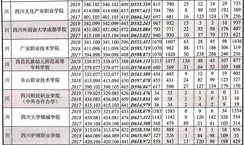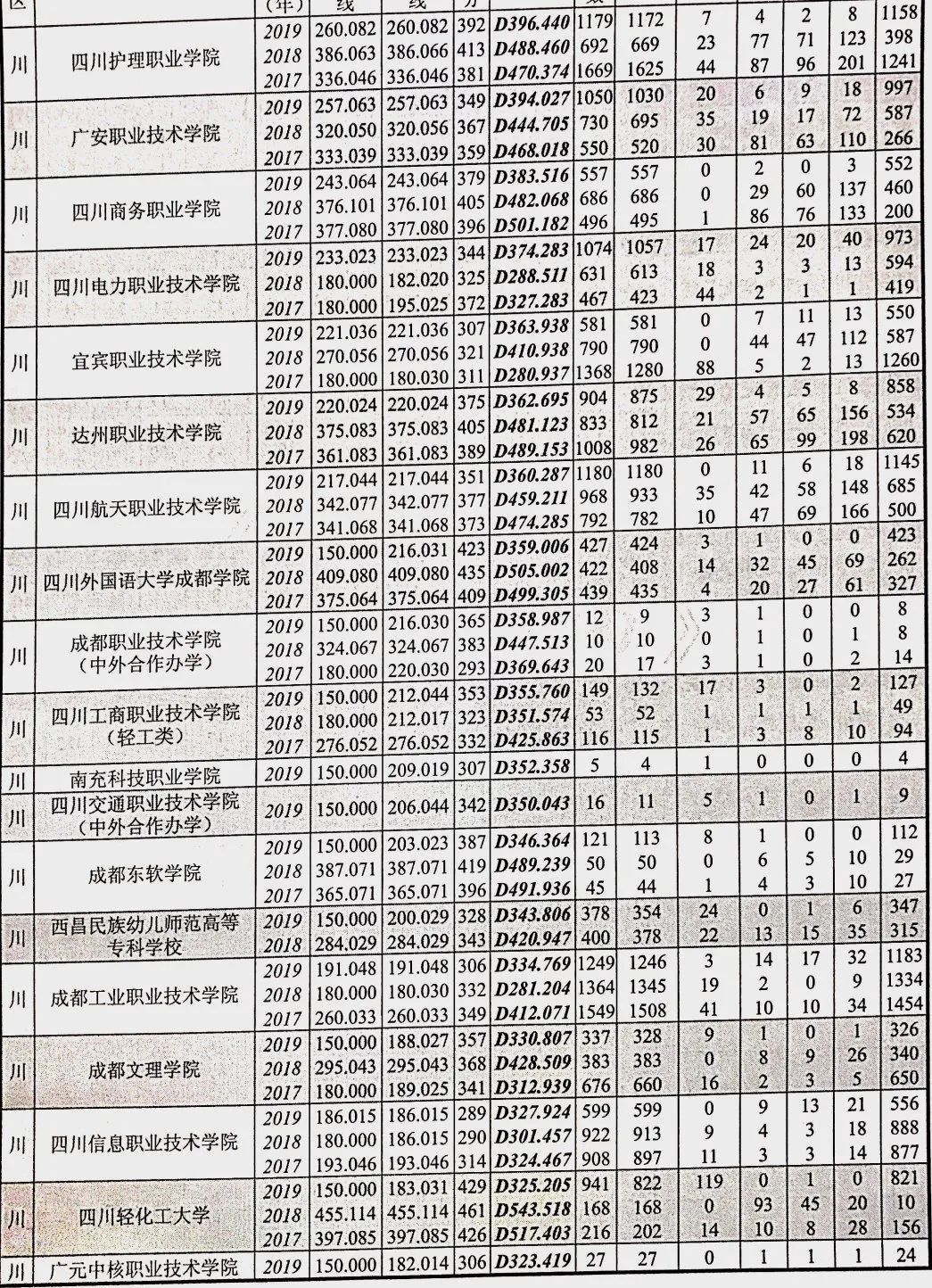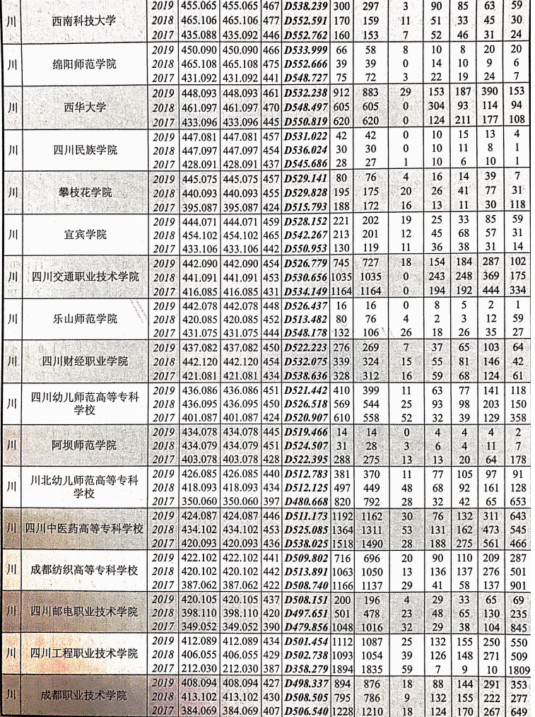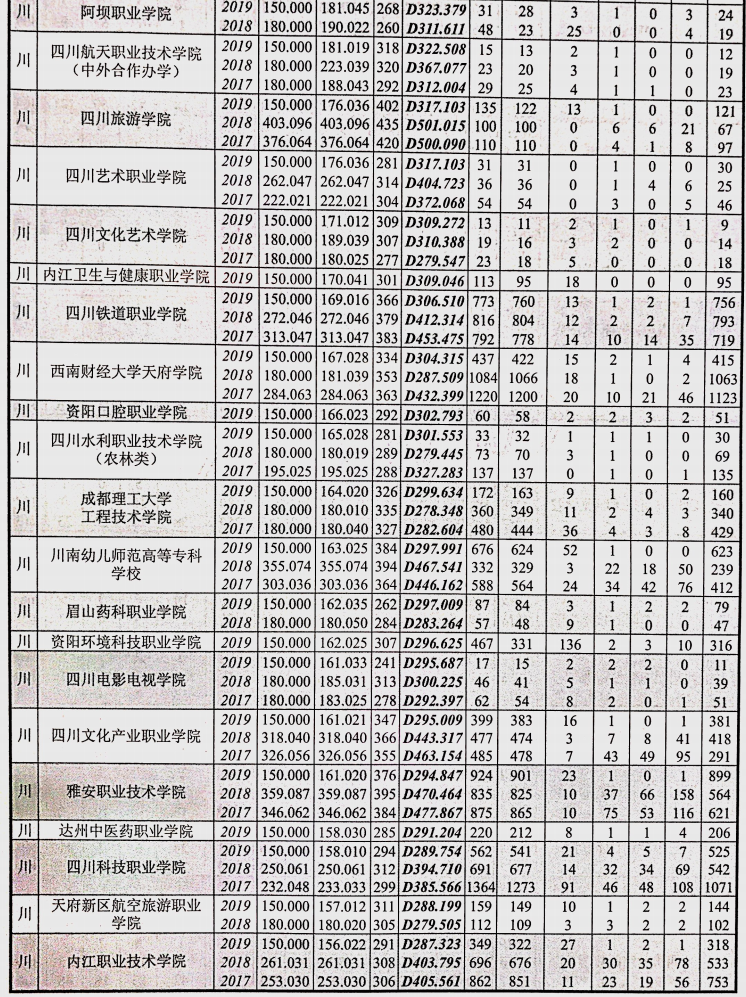 2017——2019年四川高校在川招生录取情况统计表(专科批)