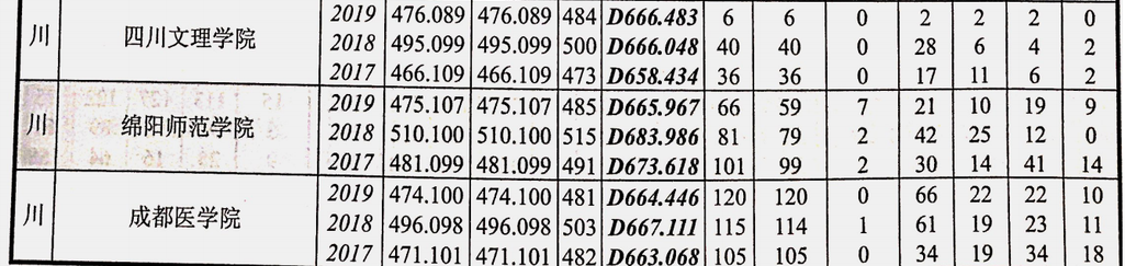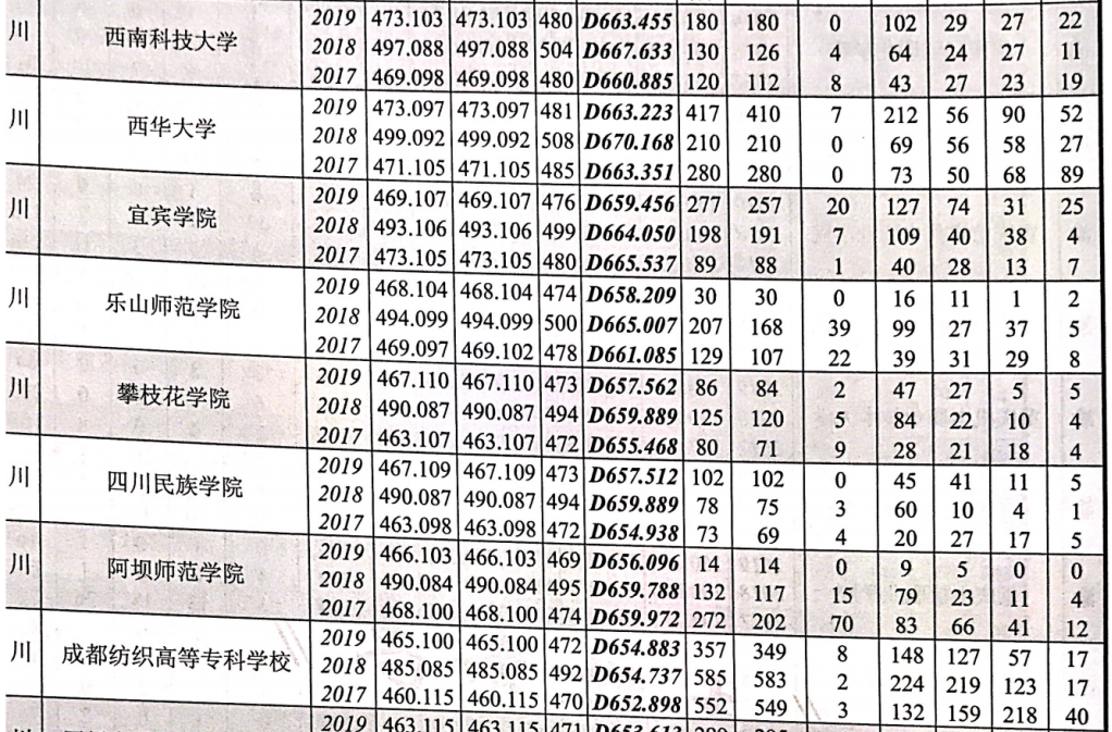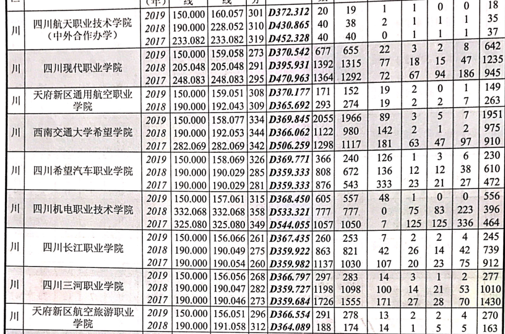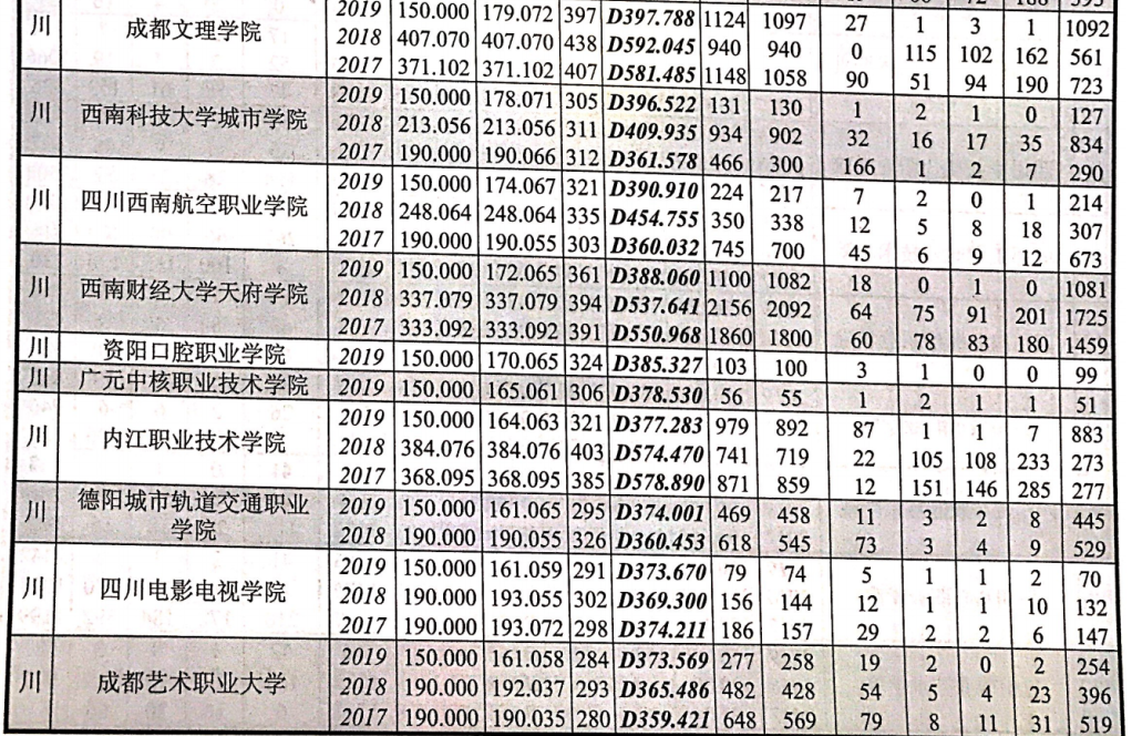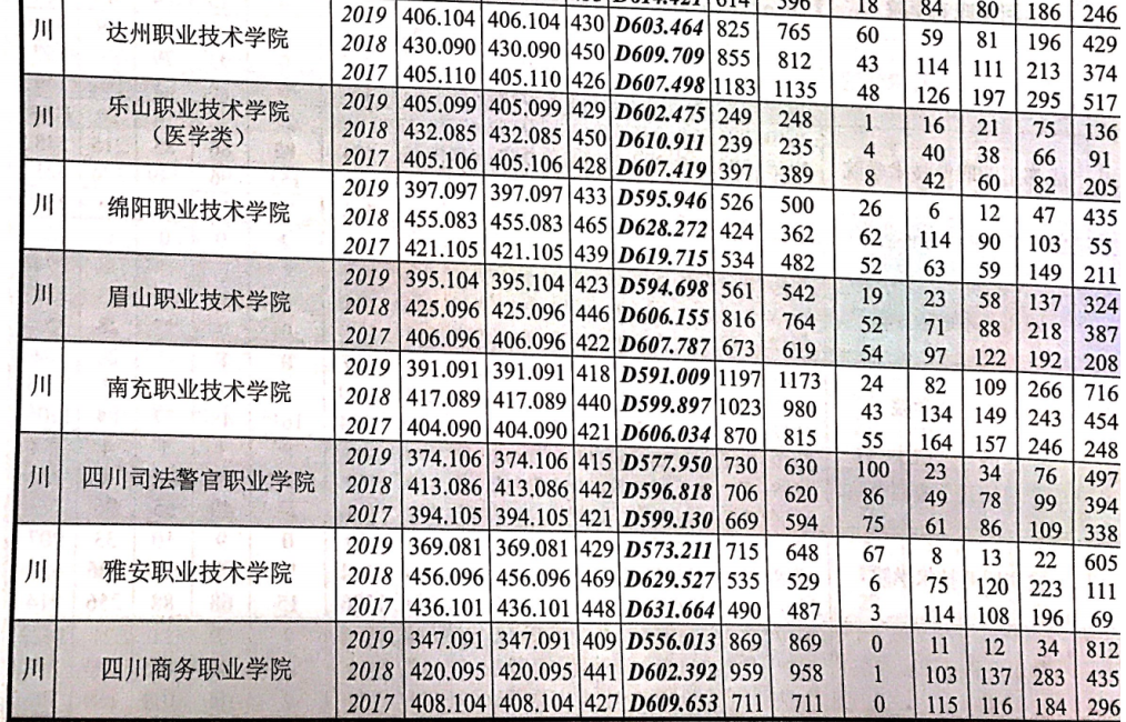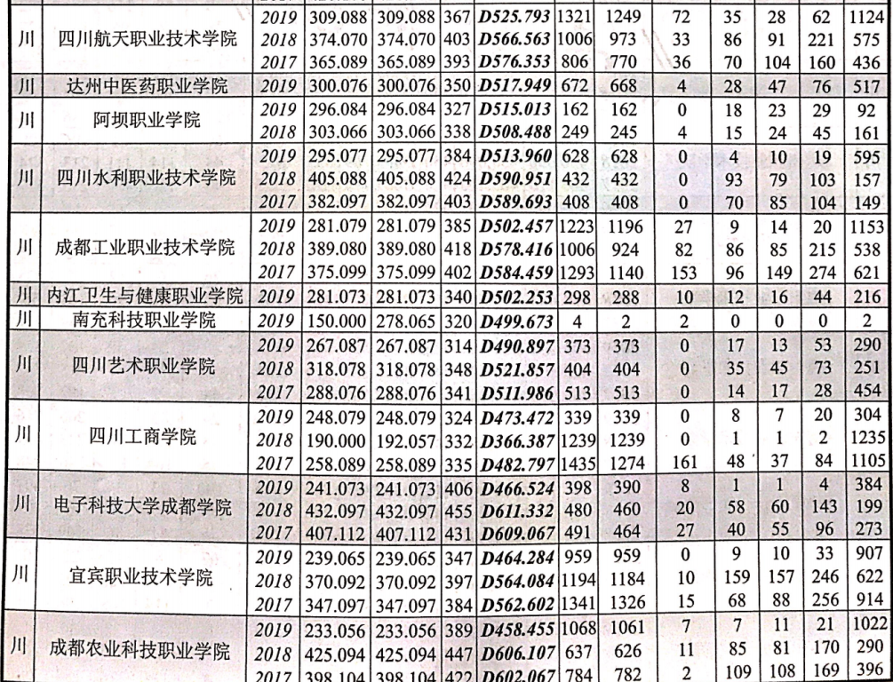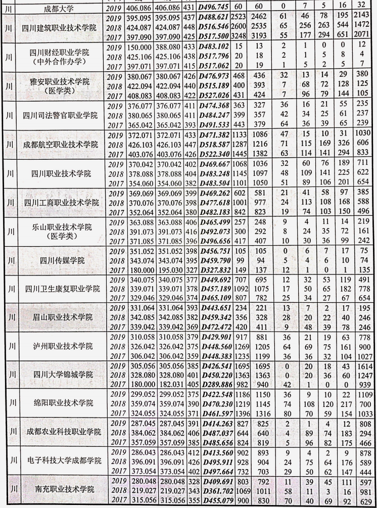 2017——2019年四川高校在川招生录取情况统计表(专科批)