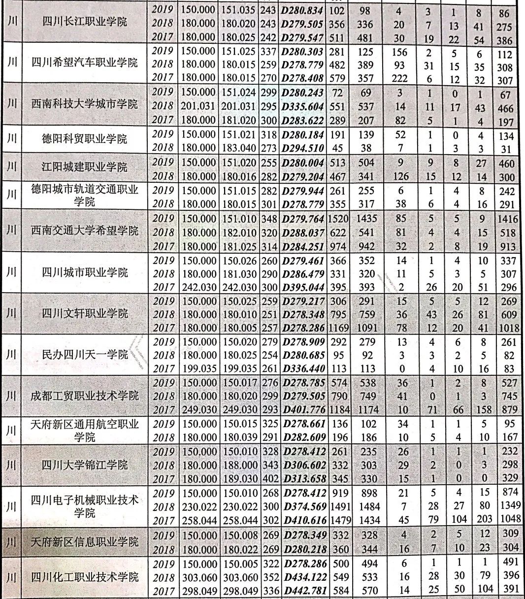 注:2019年、2018年、2017年理科高专批批线分别为:150分、180分、180分