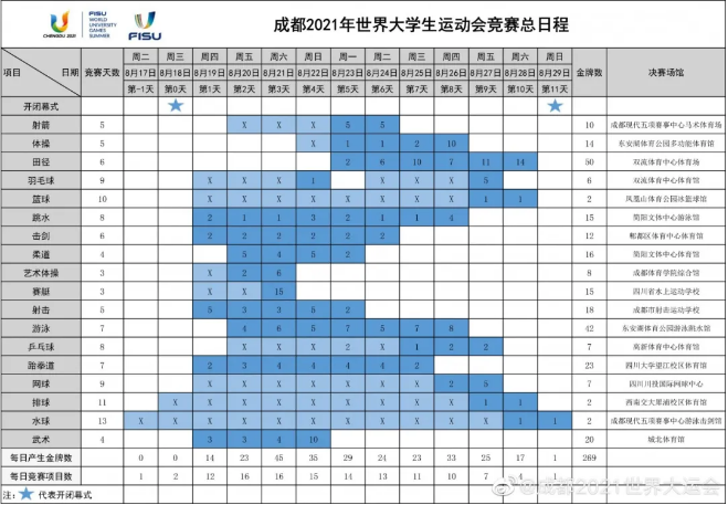 日前,成都2021年第31届世界大学生夏季运动会官方网站公布了成都大运会竞赛总日程。