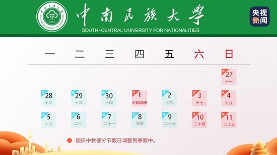 目前,对中秋国庆假期安排,仍有学校处于观望状态,也有很多高校作出了缩短双节假期的决定,并公布了假期补课及调休时间,一些学校对寒假放假时间也作了相应调整。