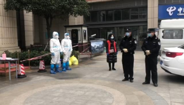 小区的门口,有民警在现场执行进行管控。需要进入小区的医护人员以及公安人员也都穿上了防护服。