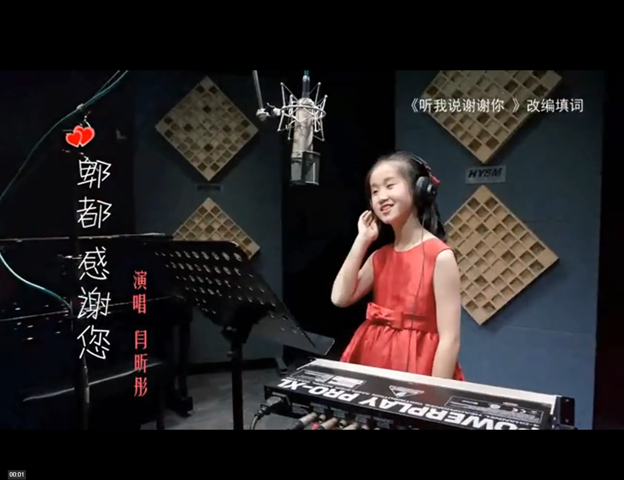 据了解,这首歌曲是郫都区教育局安排音乐老师改编的,希望为防控贡献一份郫都教育的力量,从策划创意到录制只用了三天的时间。“当我从当老师的爸爸妈妈那里了解到,许多医叔叔阿姨10多小时不吃不喝不上厕所,不分白天黑夜的加班,我就希望自己能为他们做点什么,感谢他们做我们生命的守护神。”来自郫都区崇宁小学5年级3班的闫昕彤是这首歌曲的主唱,得到这次的机会她特别的开心,觉得自己的希望成真了。