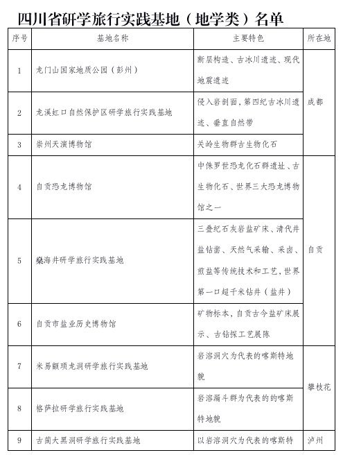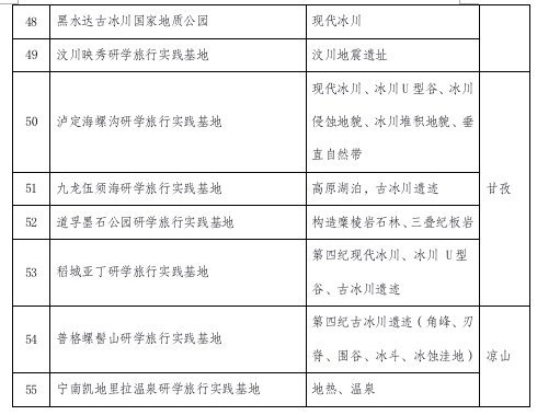 3月11日,记者从省文化和旅游厅获悉,根据《关于推荐全省地学研学旅行实践基地及精品线路的通知》(川文旅发〔2020〕91号)工作要求,在各地申报的基础上,按照地学主题鲜明、有基础条件的原则,经专家评审、专题研究,拟确定龙门山国家地质公园(彭州)等55家单位为地学研学旅行实践基地(名单详见附件),现予公示。