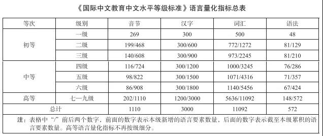 《标准》将学习者中文水平分为“三等九级”,并以音节、汉字、词汇、语法四种语言基本要素构成“四维基准”,以言语交际能力、话题任务内容和语言量化指标形成三个评价维度,以中文听、说、读、写、译作为五项语言技能,从而准确标定学习者的中文水平。