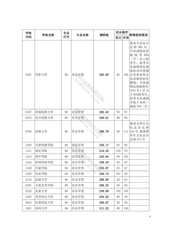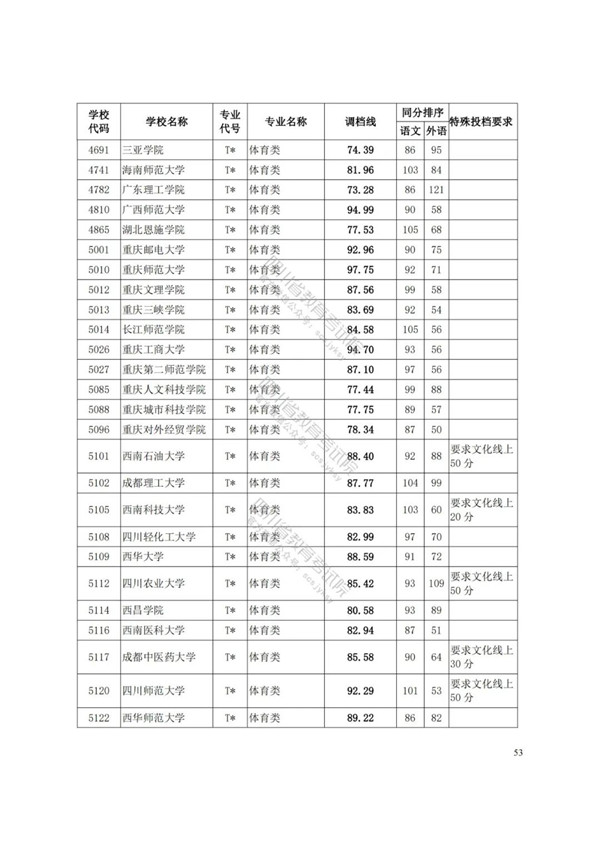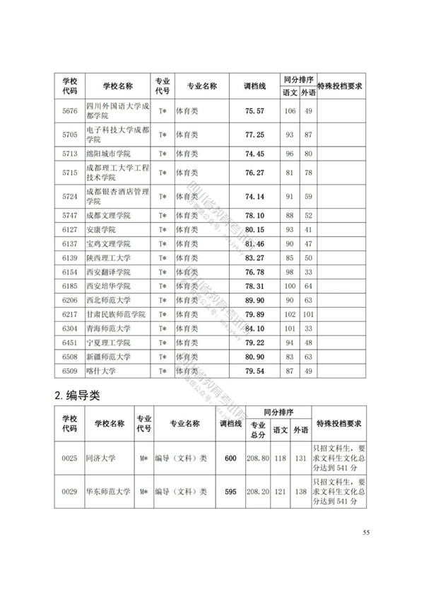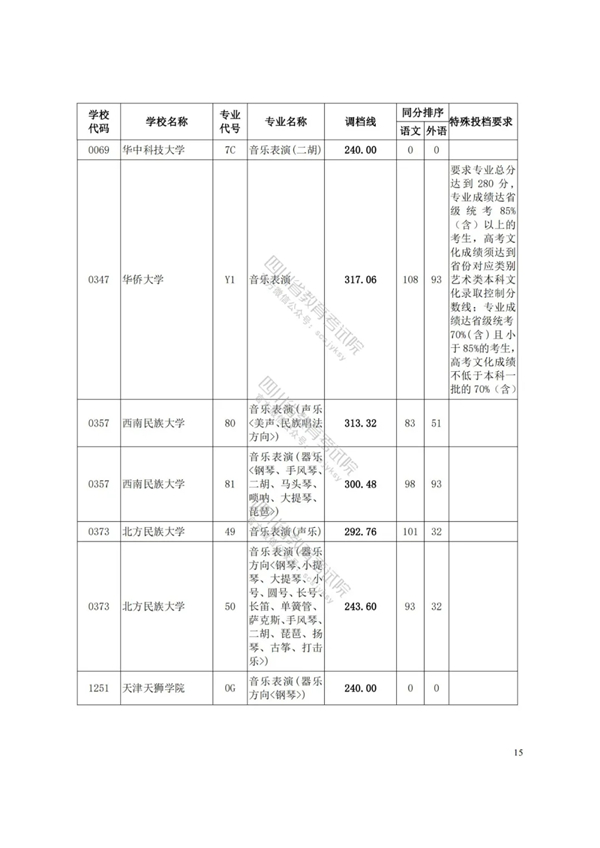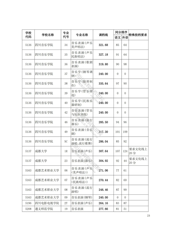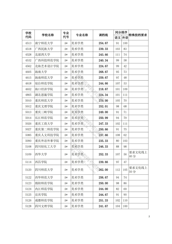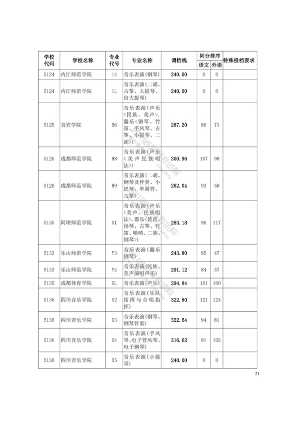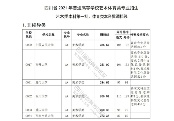 四川省2021年普通高等学校艺术体育类专业招生艺术类本科第一批、体育类本科批调档线出炉