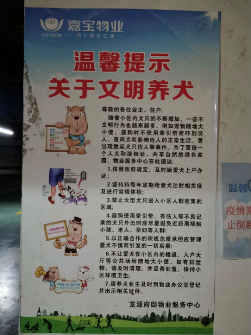 周经理告诉记者,小区业委会和物业经常都会提示业主文明养犬,一定要看管好自己的宠物,以免伤人。