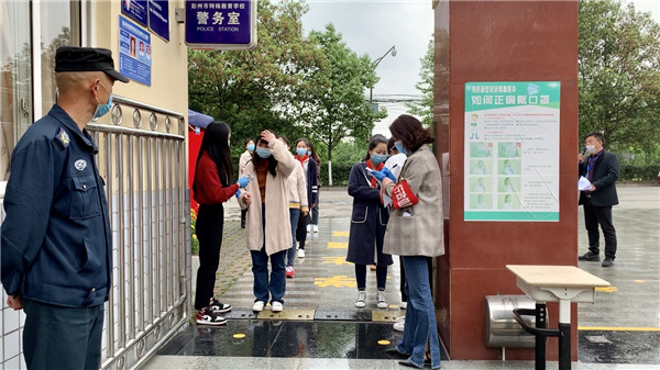 演练时,针对各个环节出现体温异常学生的情况,学校立即启动应急处置预案,老师立即将学生送入校门口临时留观点(校内隔离室),由专人进行健康询问,并进行第二次乃至第三次的体温检测,如确有体温异常,班主任会立即通知家长,分管领导立即向定点医院和教育局进行汇报,由120送定点医院发热门诊做进一步诊治。整个活动分工明确、责任到人、流程清晰,演练现场组织严密,井然有序。