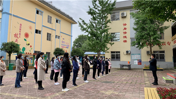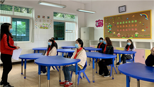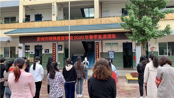四川教育报道网4月23日讯(记者 易彬 通讯员 陈尚伟) 为做好复课准备,进一步增强全体教师的疫情防控意识,习得处理学生健康安全突发状况的知识与方法,为更好地开学复课提供保障,4月21日,彭州市特殊教育学校(以下简称:彭州特校)开展了复课疫情防控演练活动。教育局教育科阳老师、致和卫生院医生、学校健康副校长胡佳、天彭街道工作人员肖老师、繁江路派出所朱警官等相关人员准时到现场进行指导。