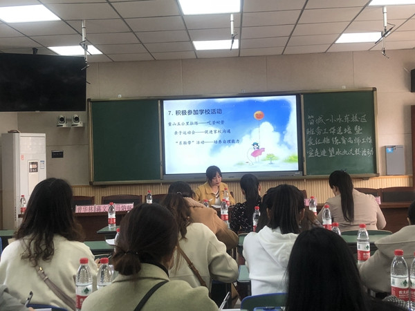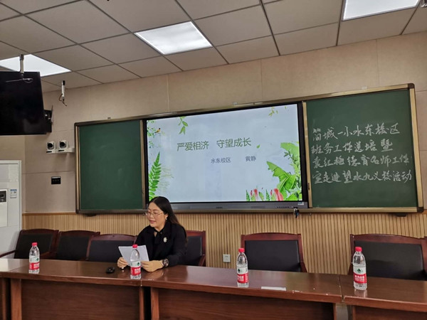 此次班务工作送培活动现场由望水九义校党支部书记、校长冯平主持。前半段是简城一小水东校区的周逸、黄静两位班主任做经验交流分享。