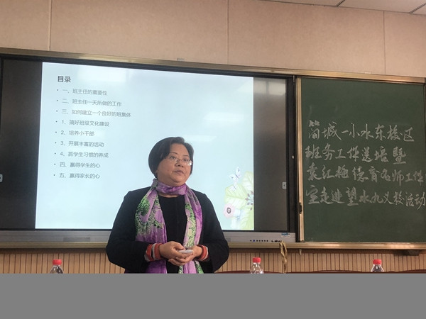 后半段,简城一小水东校区副校长袁红梅给大家进行了一堂很有收获的《做智慧班主任》培训。作为袁红梅德育名师工作室领衔人和“全国十佳少先队辅导员”的袁校长,这位每天早出晚归、心系教育的老党员,用她几十年积累的德育经验,特别强调班主任性格对学生影响很大,要把自己变为最优秀的人才能更好担任班主任。袁校长用风趣、接地气的实例重点对如何建立一个良好班集体,从搞好班级文化建设、培养小干部、开展丰富活动、狠抓学生习惯养成等方面做了培训。
