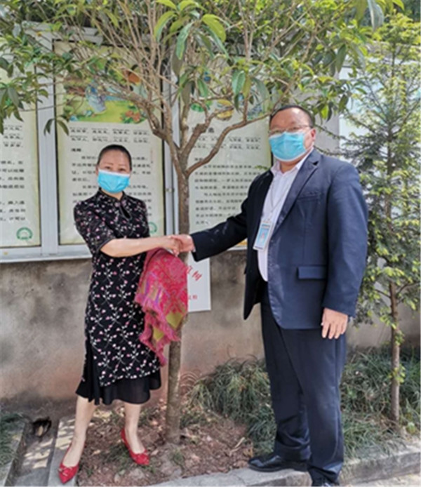 到达望水九义校后,田校长迫不及待来到一年前党建结对时种下的桂花树前再一次合影留念。