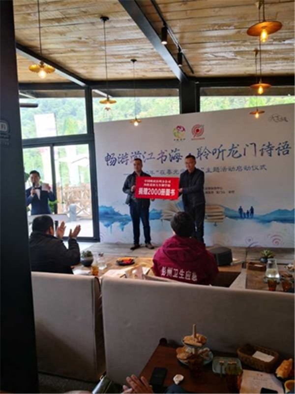 启动仪式在爱心捐赠活动中落下帷幕,中国邮政彭州分公司为桂花镇九年制学校捐赠了2000册图书。